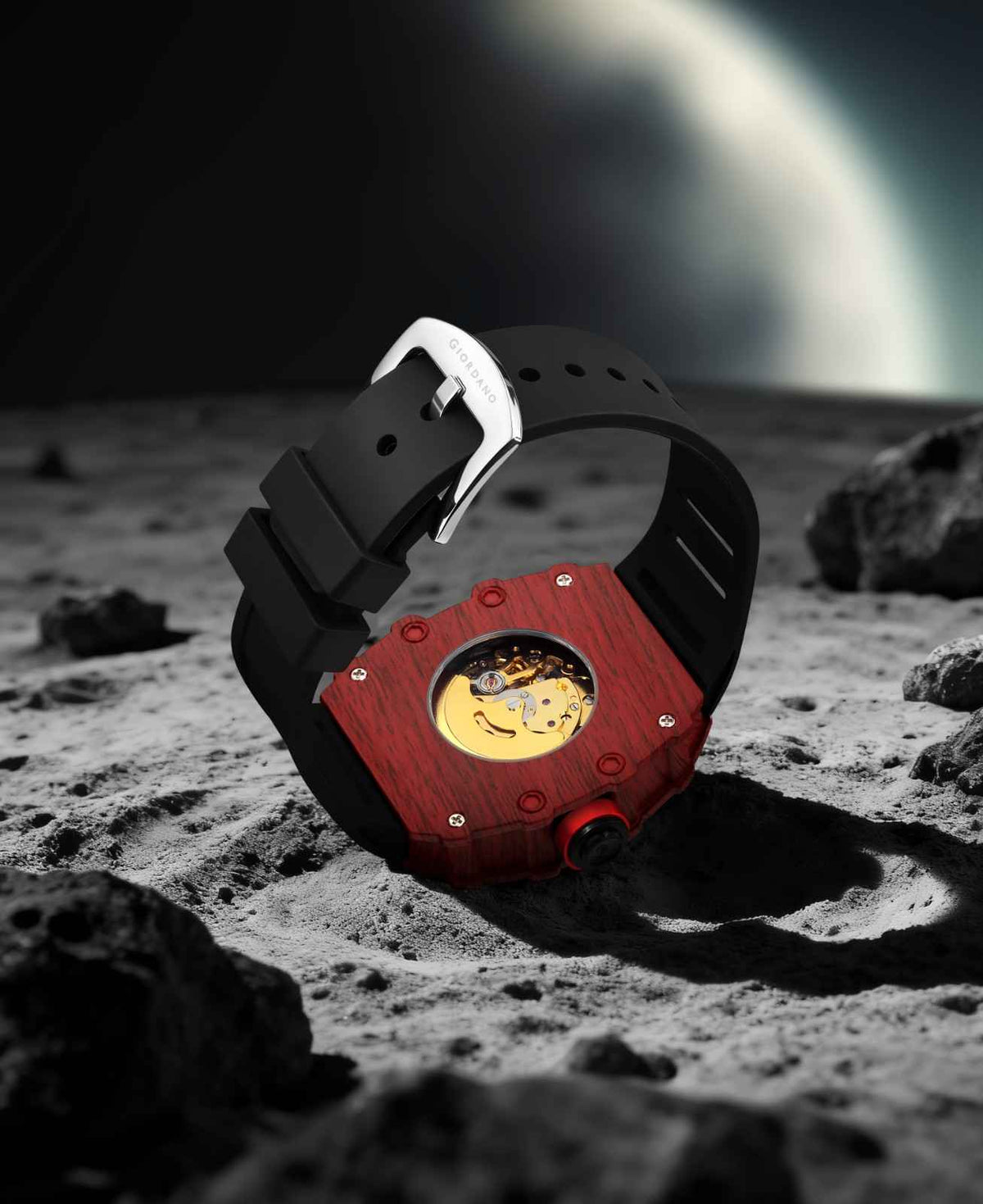 GIORDANO Automatic Square Watch for Men with Skeleton Design, Rugged Textured Case, Luminous Hands, and Silicone Strap - GZ-50181-22
