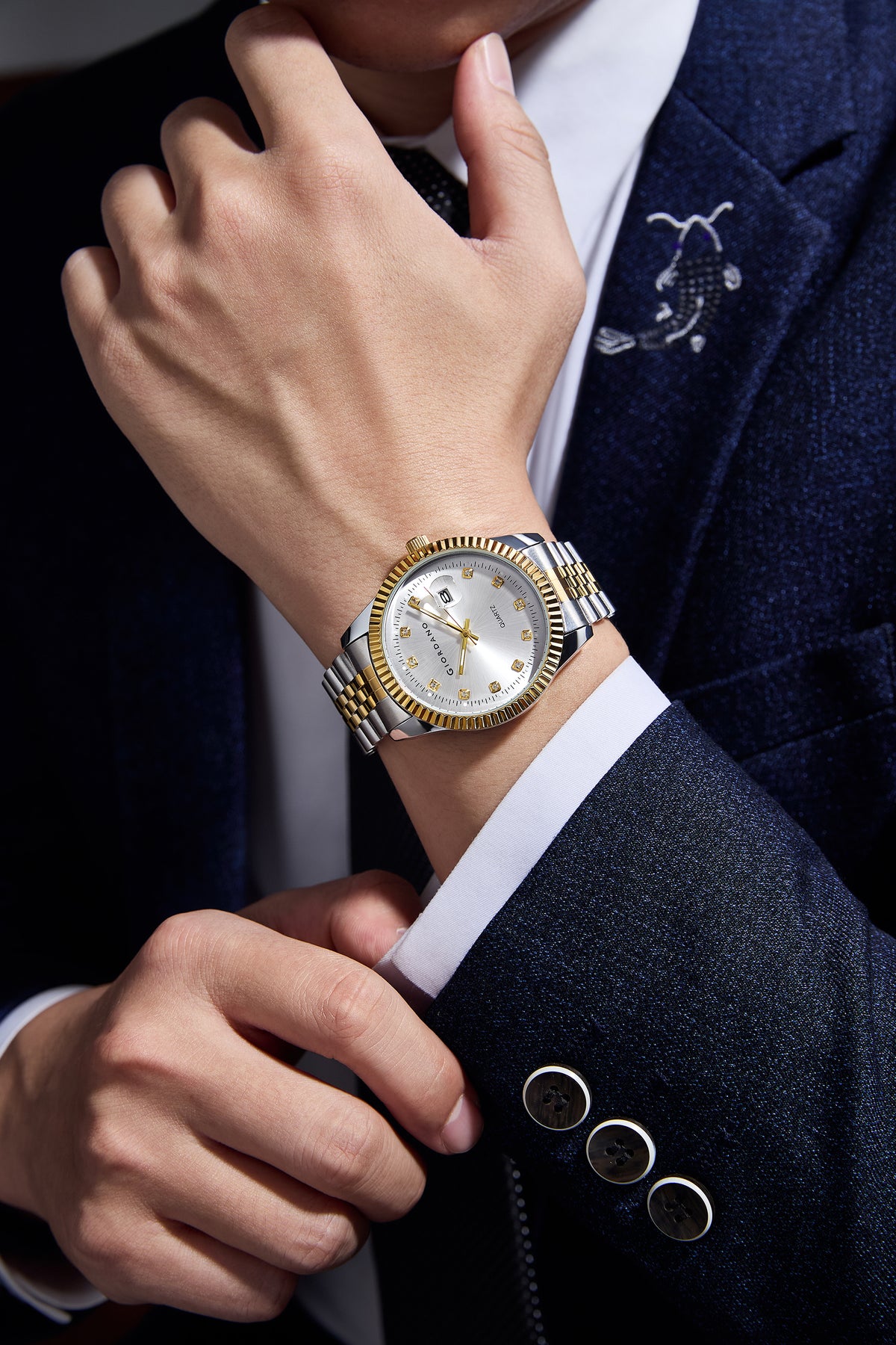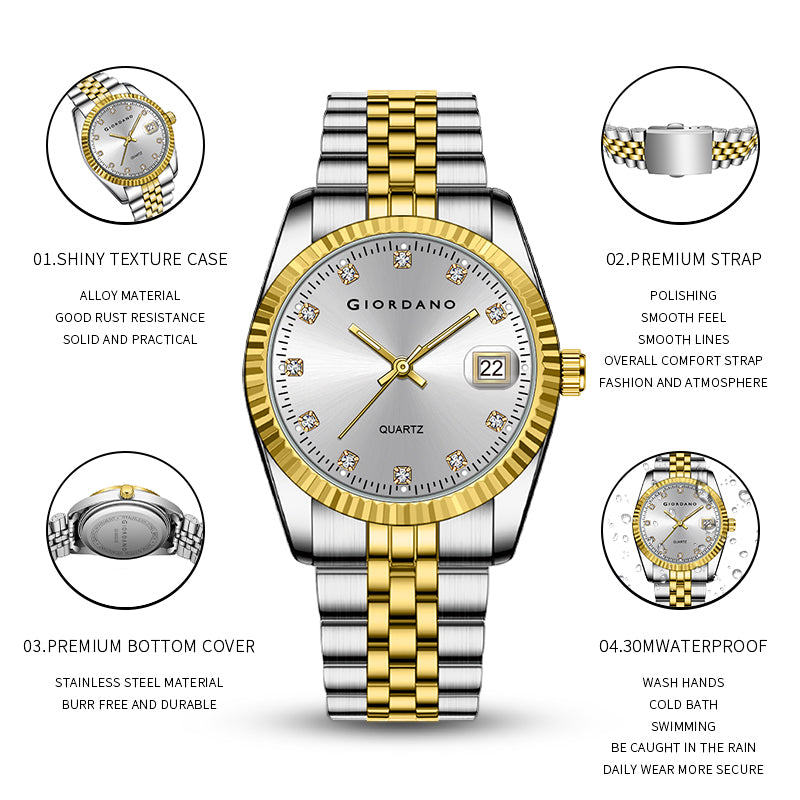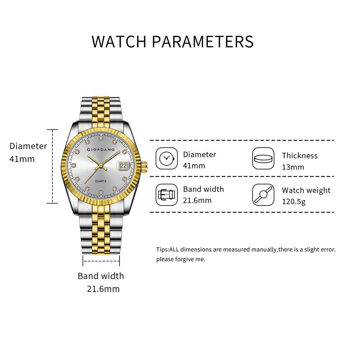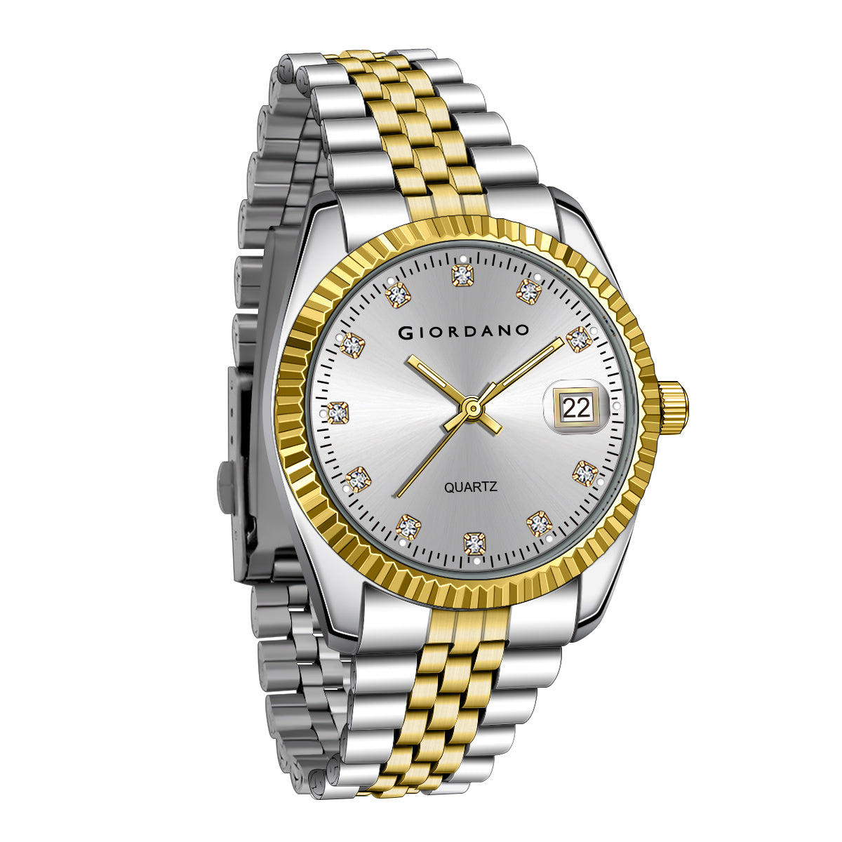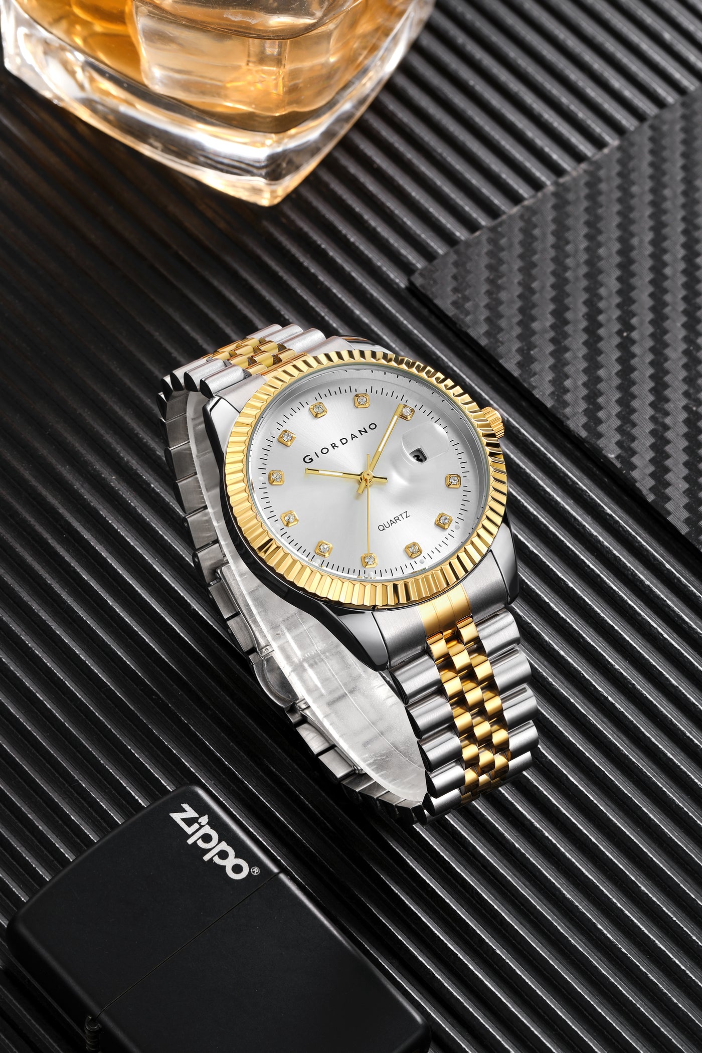 Giordano analog Watch for men with Dual-Tone Stainless Steel strap , Quartz Movement, Date Window, Diamond-Style Indices -GZ-50133-22
