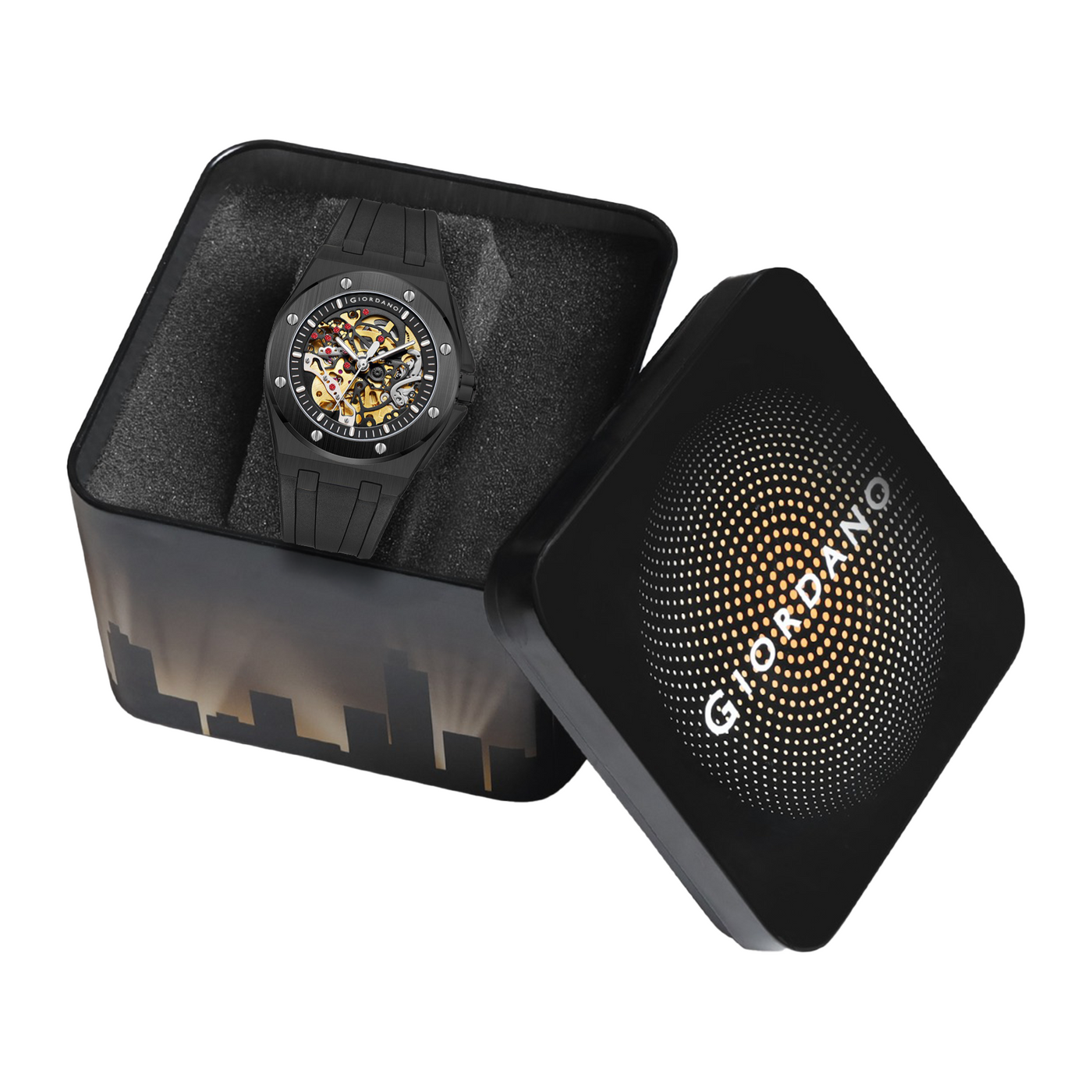 Giordano Automatic Watch for Men – Mechanical Skeleton Dial,Transparent Gear Display, Silicon Strap | GZ-50129-01