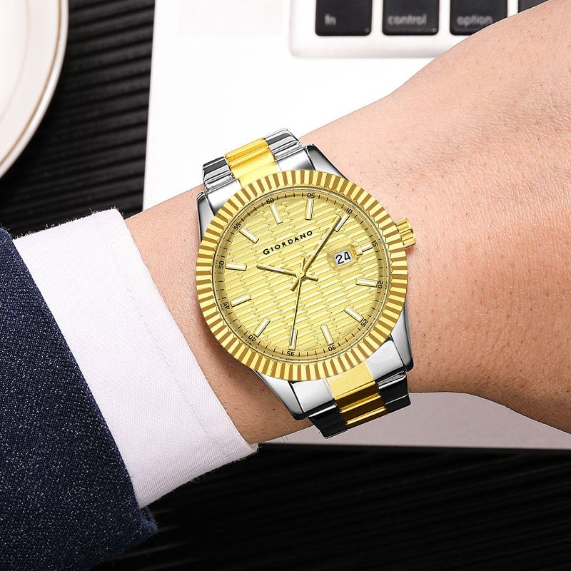 Giordano Luxurious Analog Formal Watch for Men - Textured dial with Date Magnifier Glass and Solid Stainless Steel Strap | GZ-50115-22