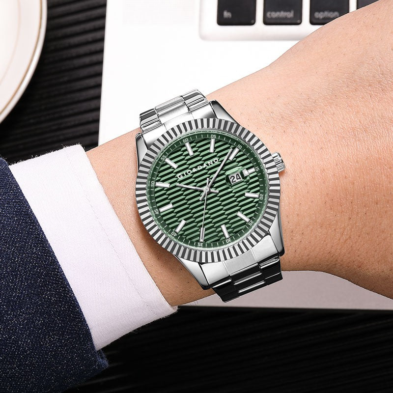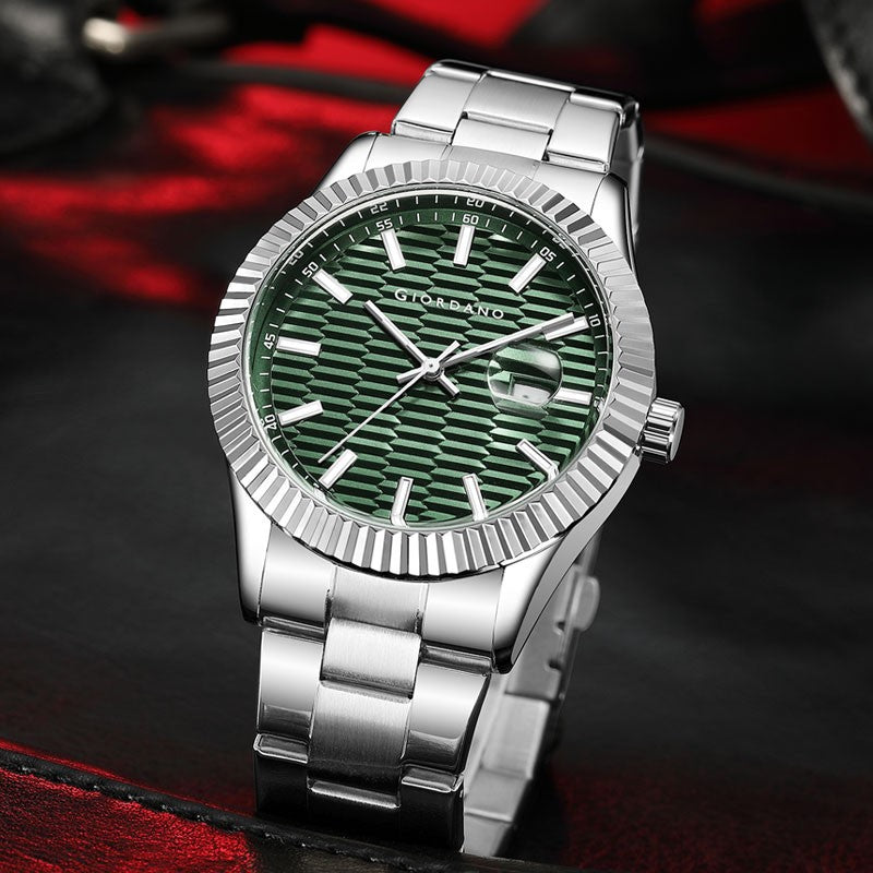 Giordano Luxurious Analog Formal Watch for Men - Textured dial with Date Magnifier Glass and Solid Stainless Steel Strap | GZ-50115-44