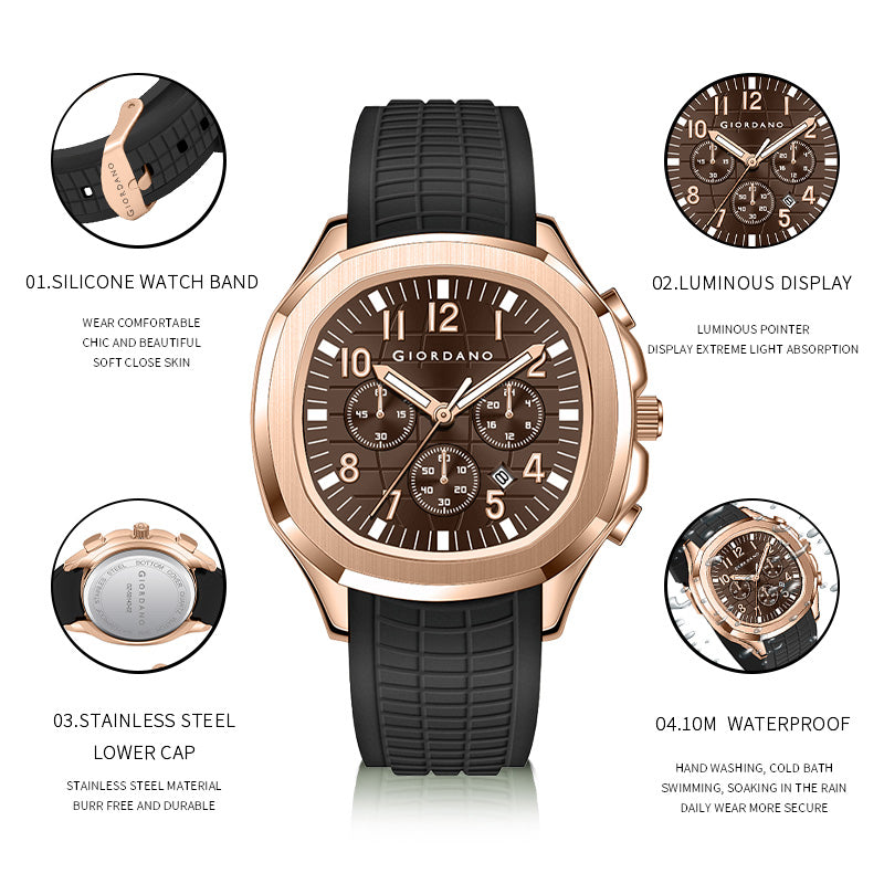 Giordano Precision and Comfort Multi Function Watch for Men with Textured Dial & Trendy Silicone Band | GZ-50143-05