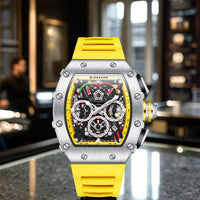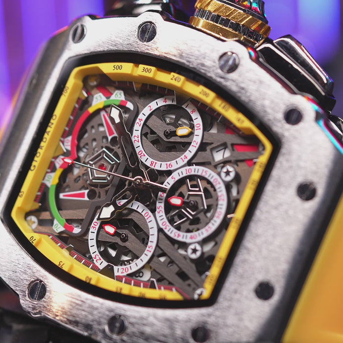 Giordano Multifunction Watch for Men with Day, Date, and 24-Hour Sub-Dial, Water Resistant Square Dial Unique Design.
