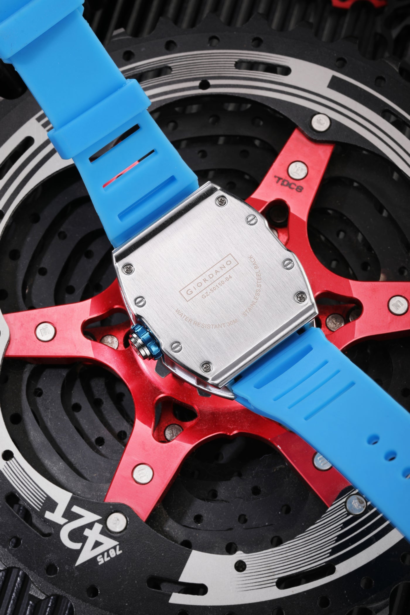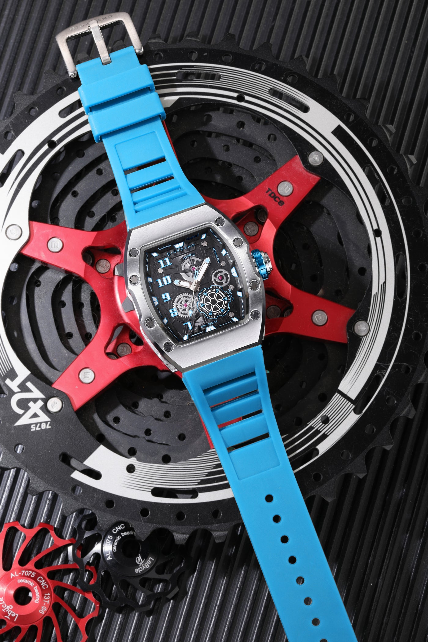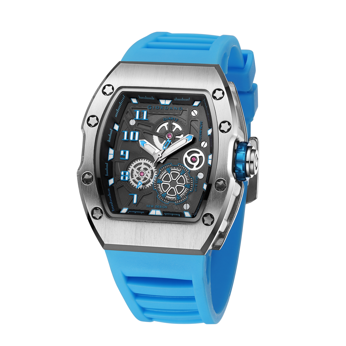 Giordano Sqaure Analog Casual Sporty Watch for Men – Mechanical-Inspired Design dial, Quartz Movement, silicon strap and date display | GZ-50150-04