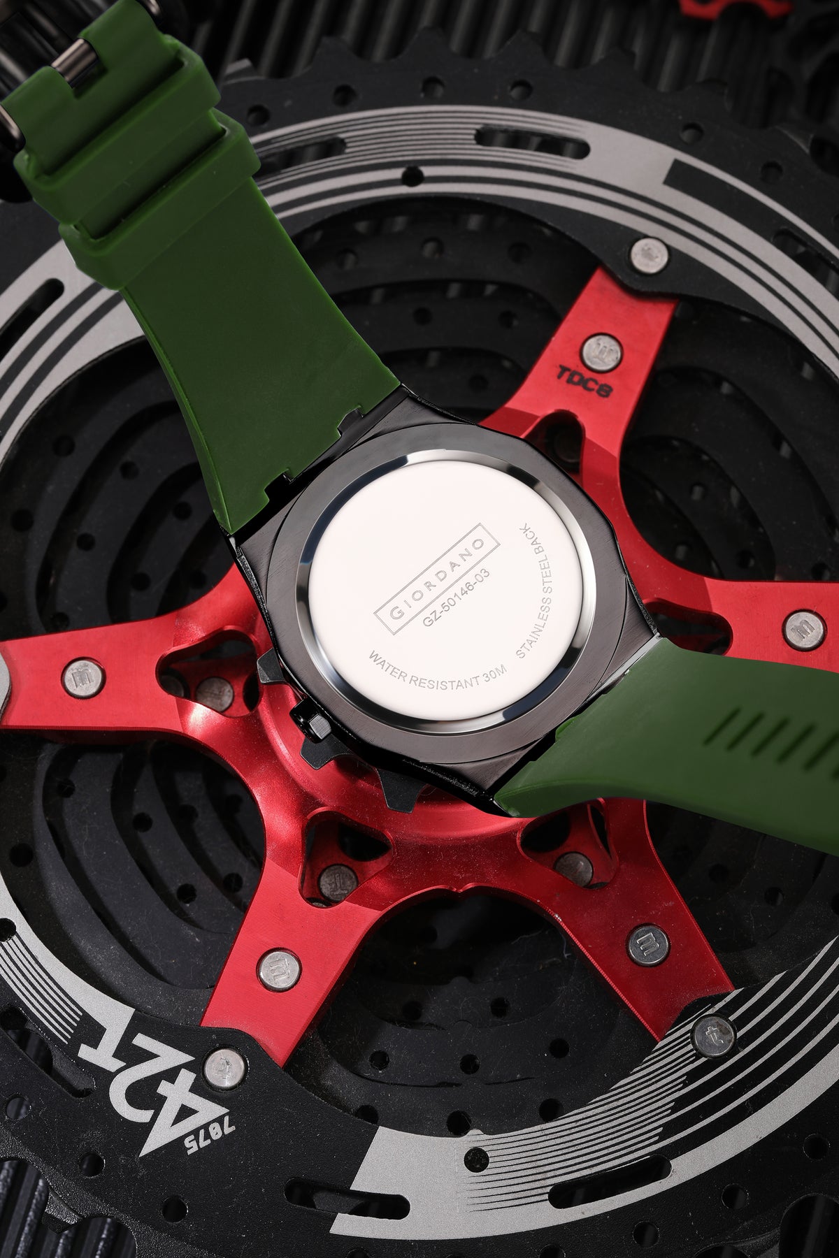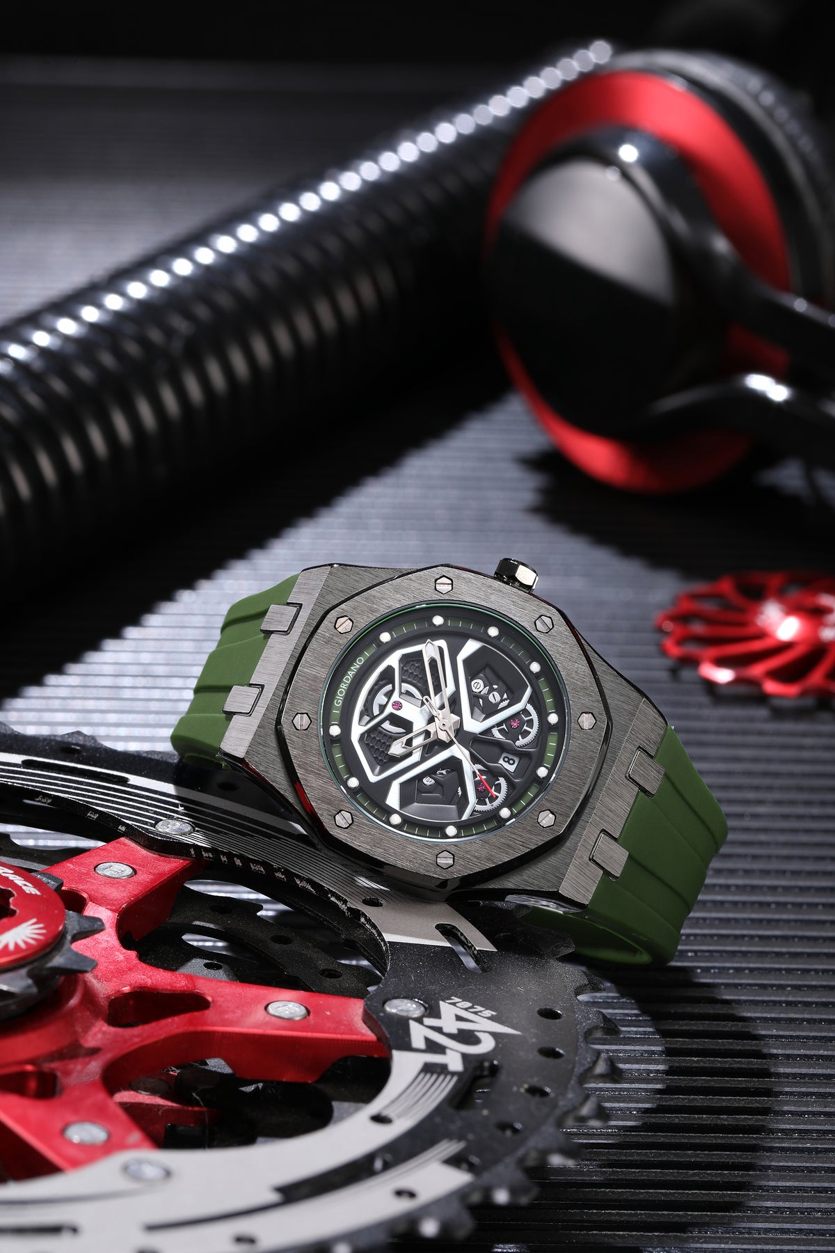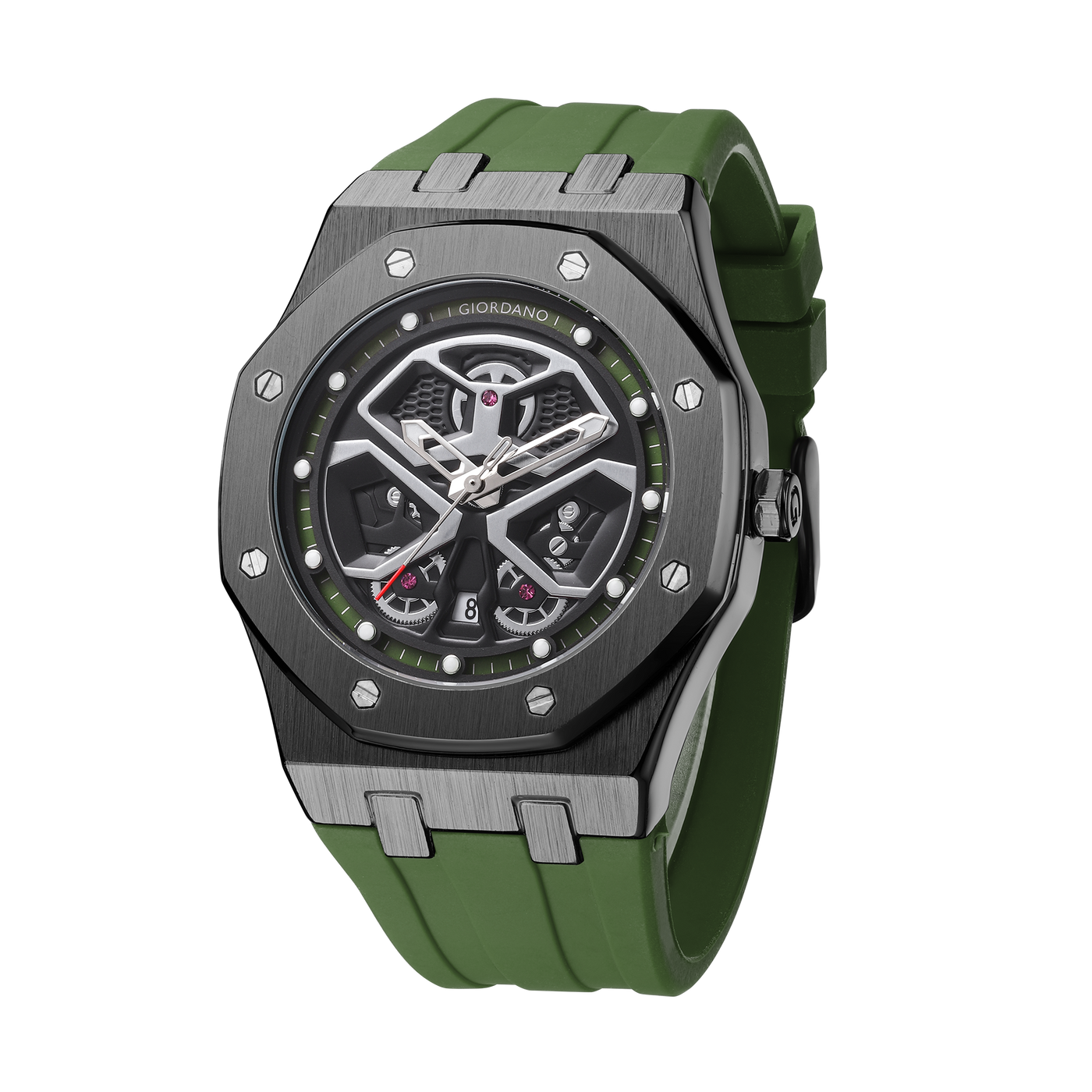 Giordano Skeleton style Dial Analog Watch for Men– Luxury Sport Watch with Silicone Strap & Brushed Metal Case – Bold & Modern Design | GZ-50146-03