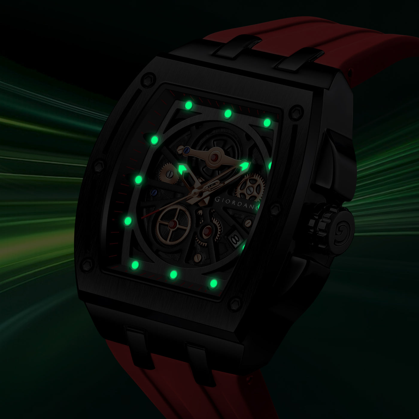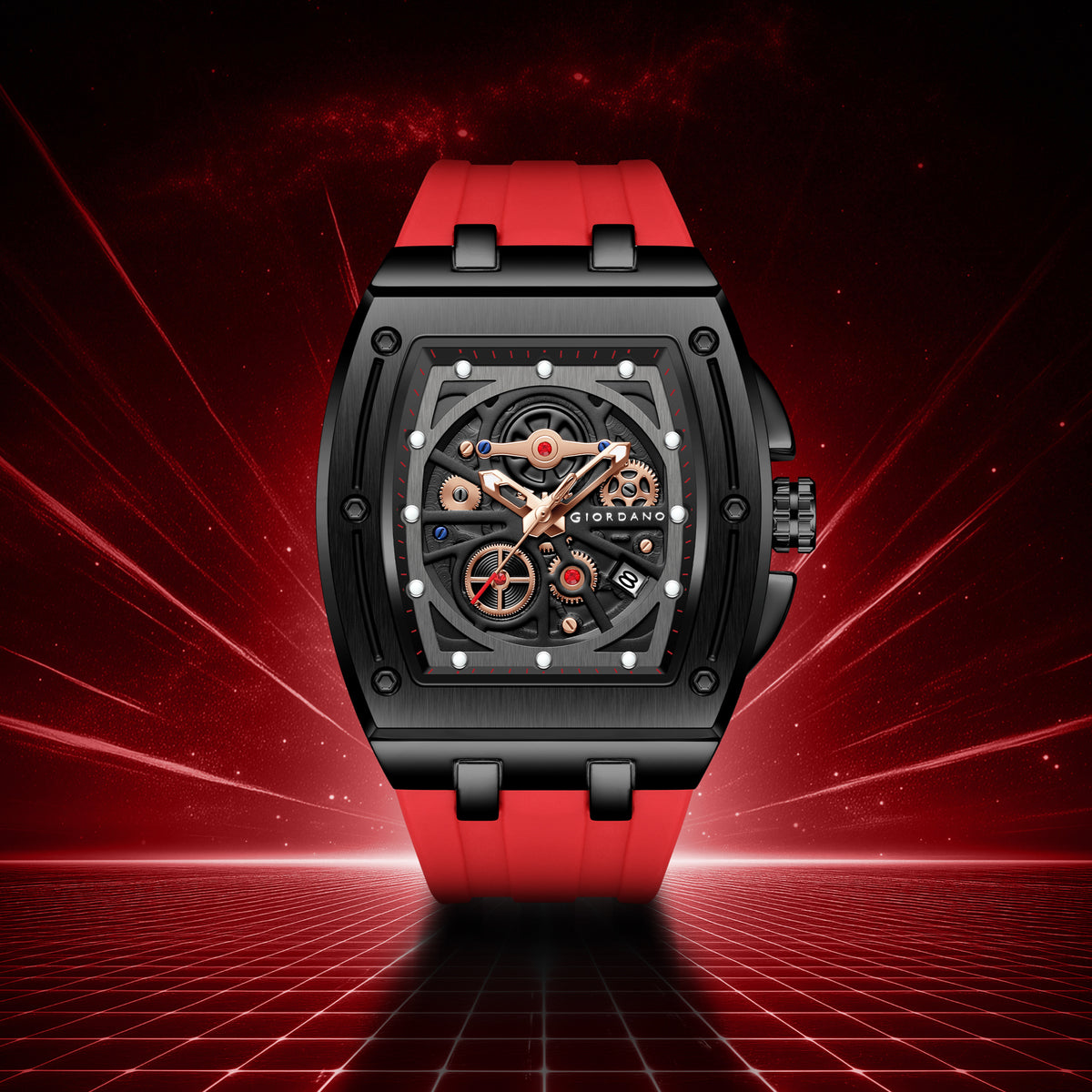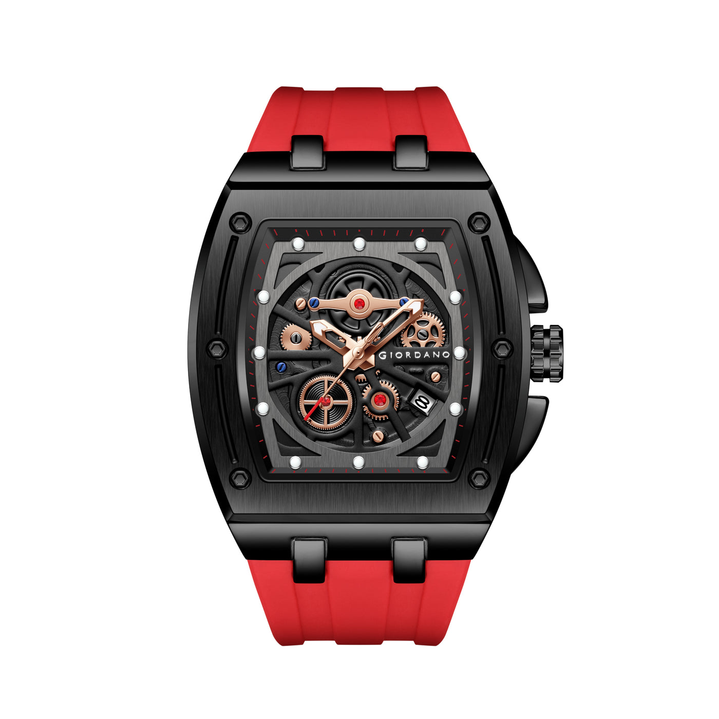 Giordano Sqaure Analog Casual Sporty Watch for Men – Mechanical-Inspired Dial, Date Display, Quartz Movement and Comfortable Silicone Strap | GZ-50151-02