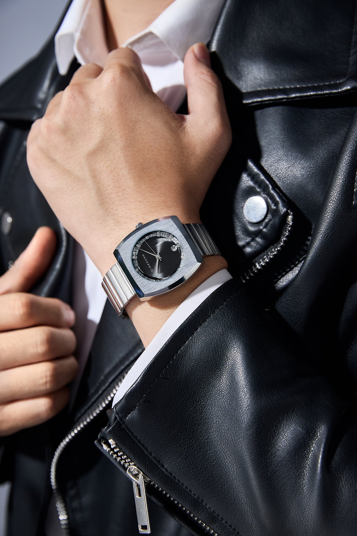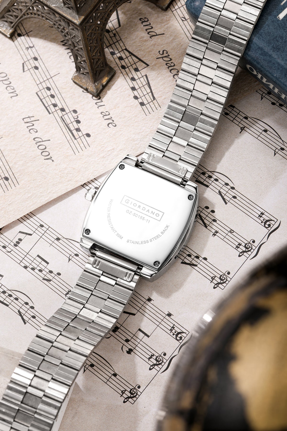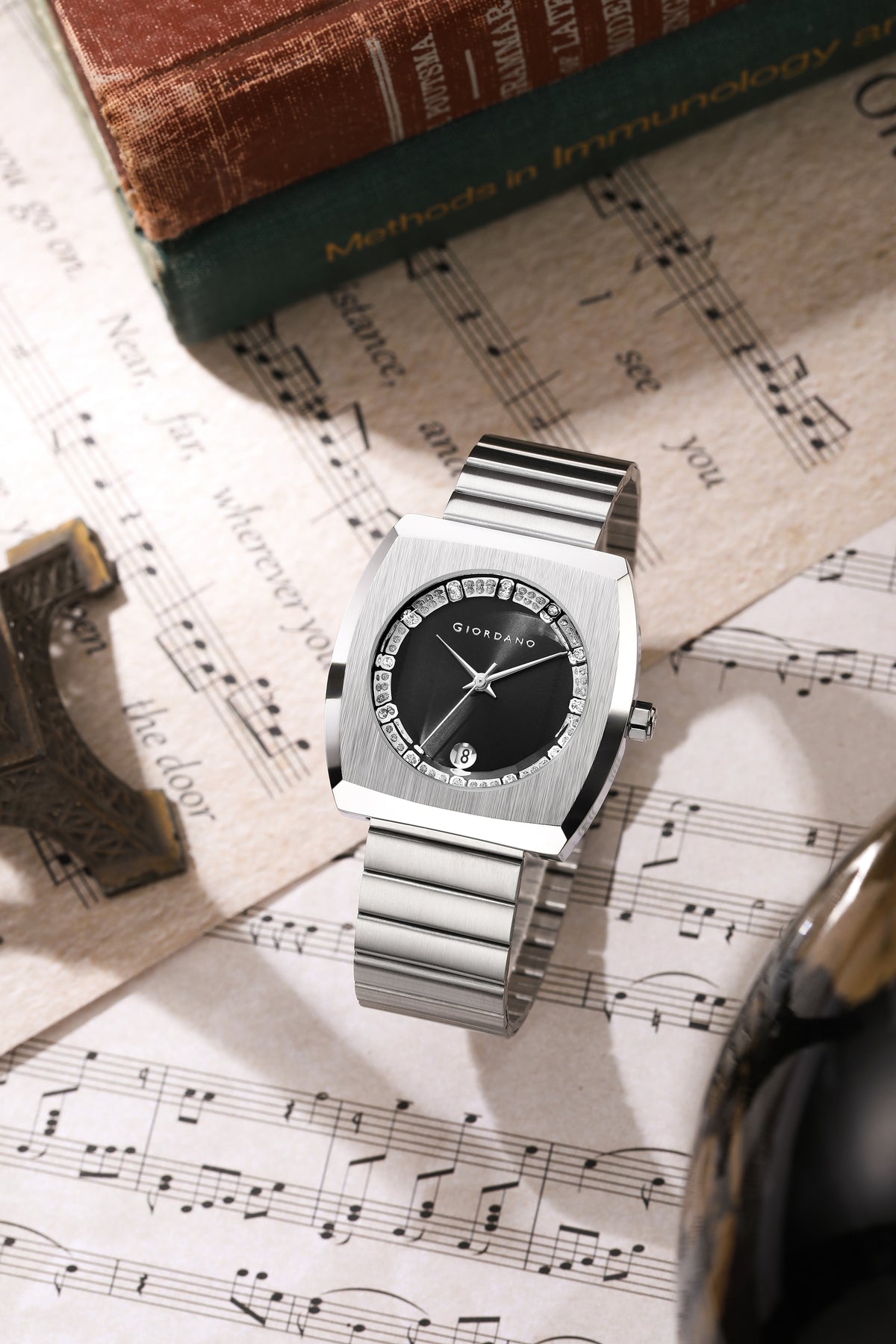 Giordano Square Analog Watch for men – Sunray gloss Dial with Crystal Hour Markers, Date Display & Stainless Steel Strap – Stylish Luxury Timepiece | GZ-50155-11