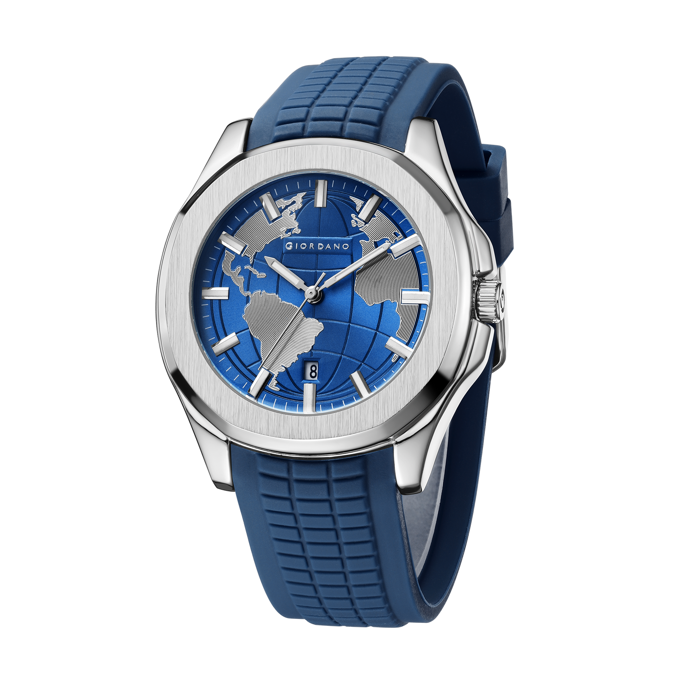 Giordano Stylish World Map design Watch for men with round dial and textured Silicone strap | GZ-50147-03