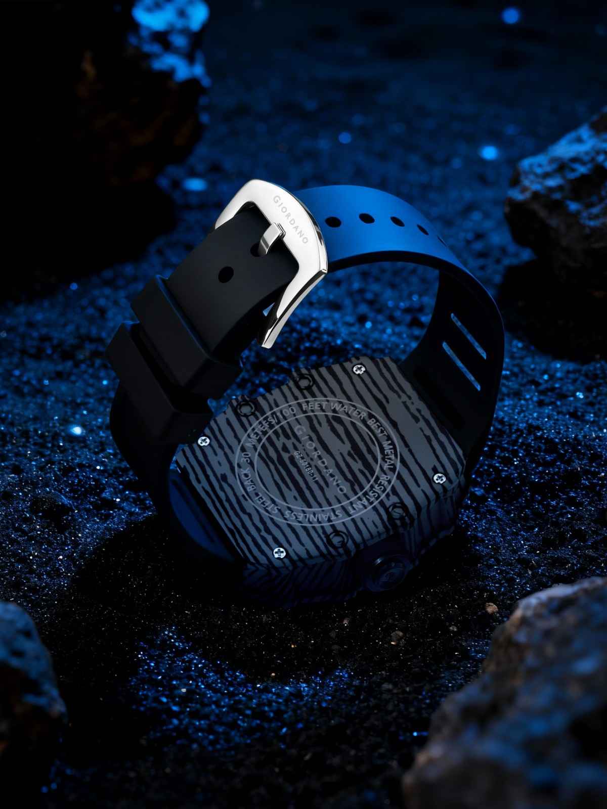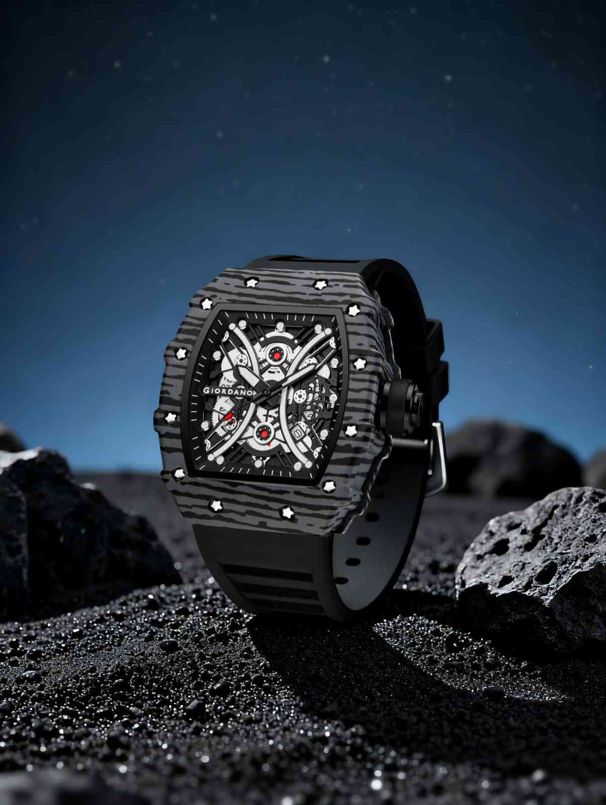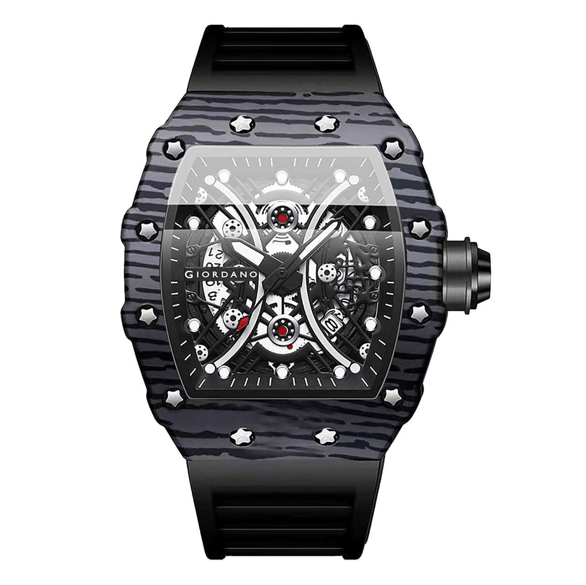 GIORDANO Analog Square Watch for Men with Skeleton Design, Rugged Textured Case, Luminous Hands, and Silicone Strap - GZ-50180-11