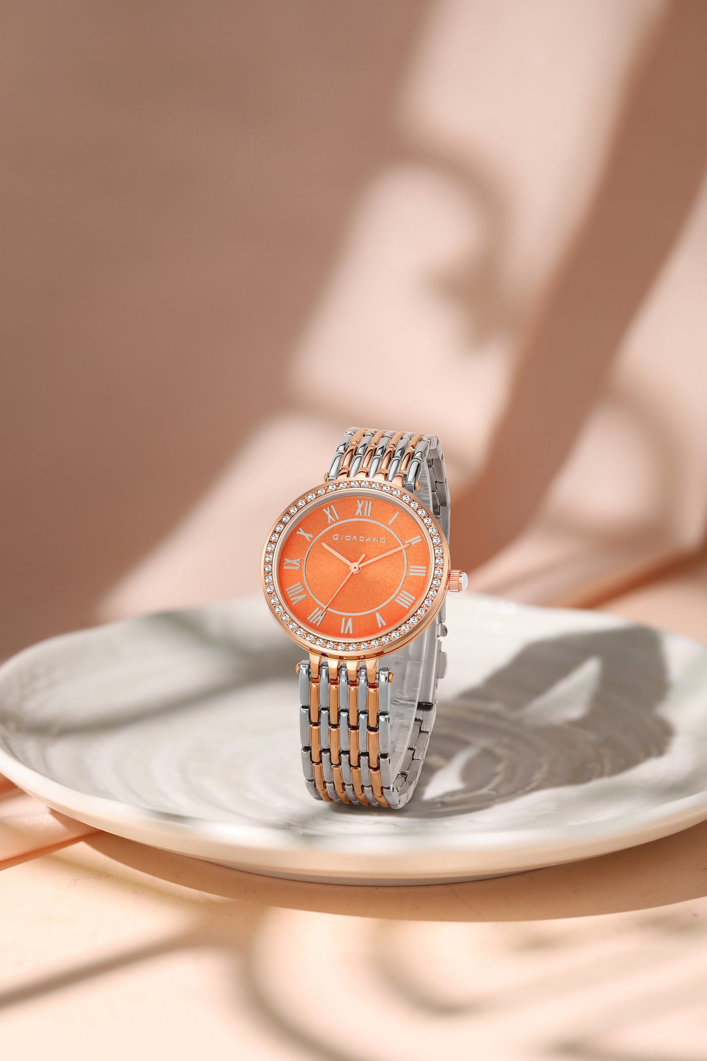Giordano Eleganza Collection Watch for Women with Stainless Steel Strap and Crystal Embellished Bezel, Roman Numerals-A2083-88A