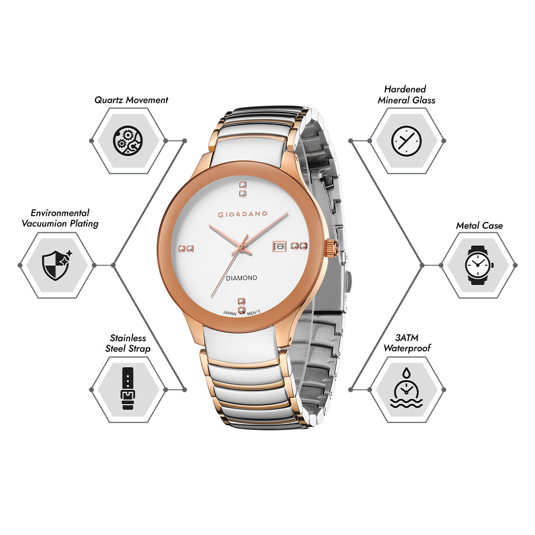 Giordano Classic Analog Watch for Men with Diamond Accents and Stainless Steel Strap GZ-50102-11