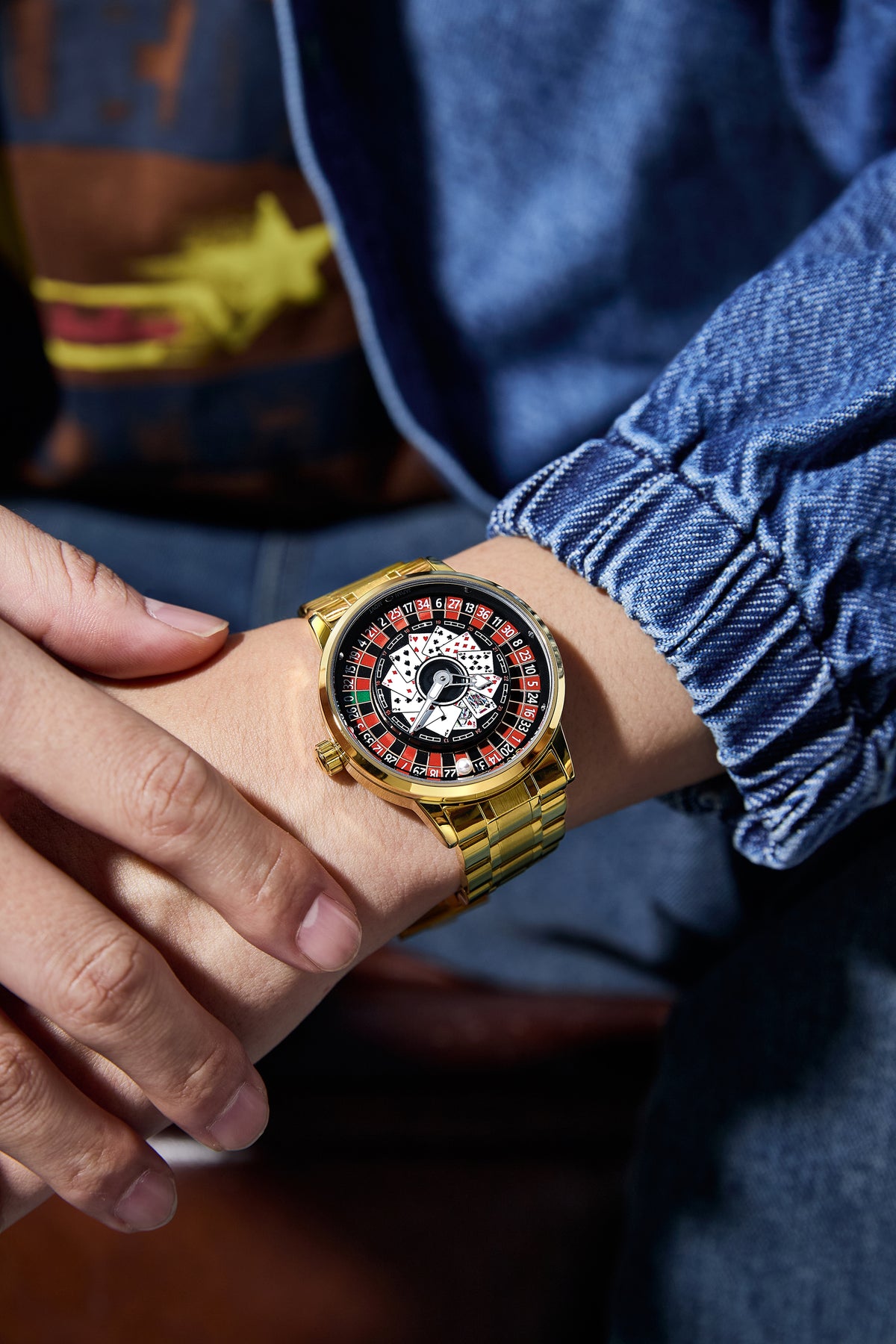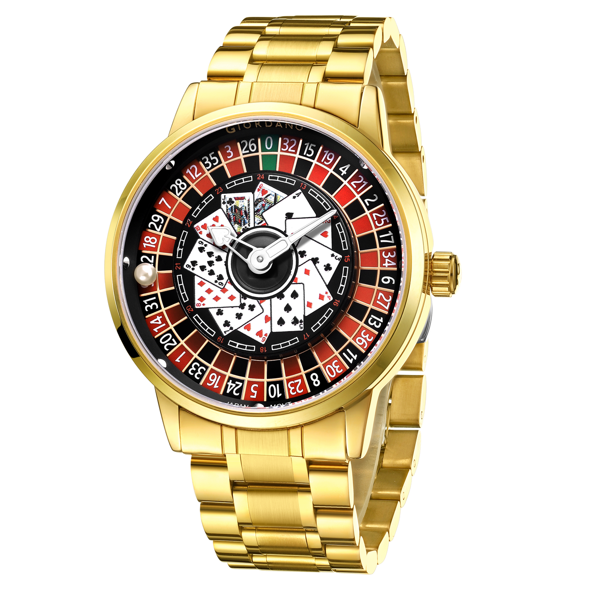 Inform when this item available Giordano Casino Royale Analog Watch for Men– Unique Poker & Roulette Dial Design with Stainless Steel Strap – Stylish Luxury Watch GZ-50136-22