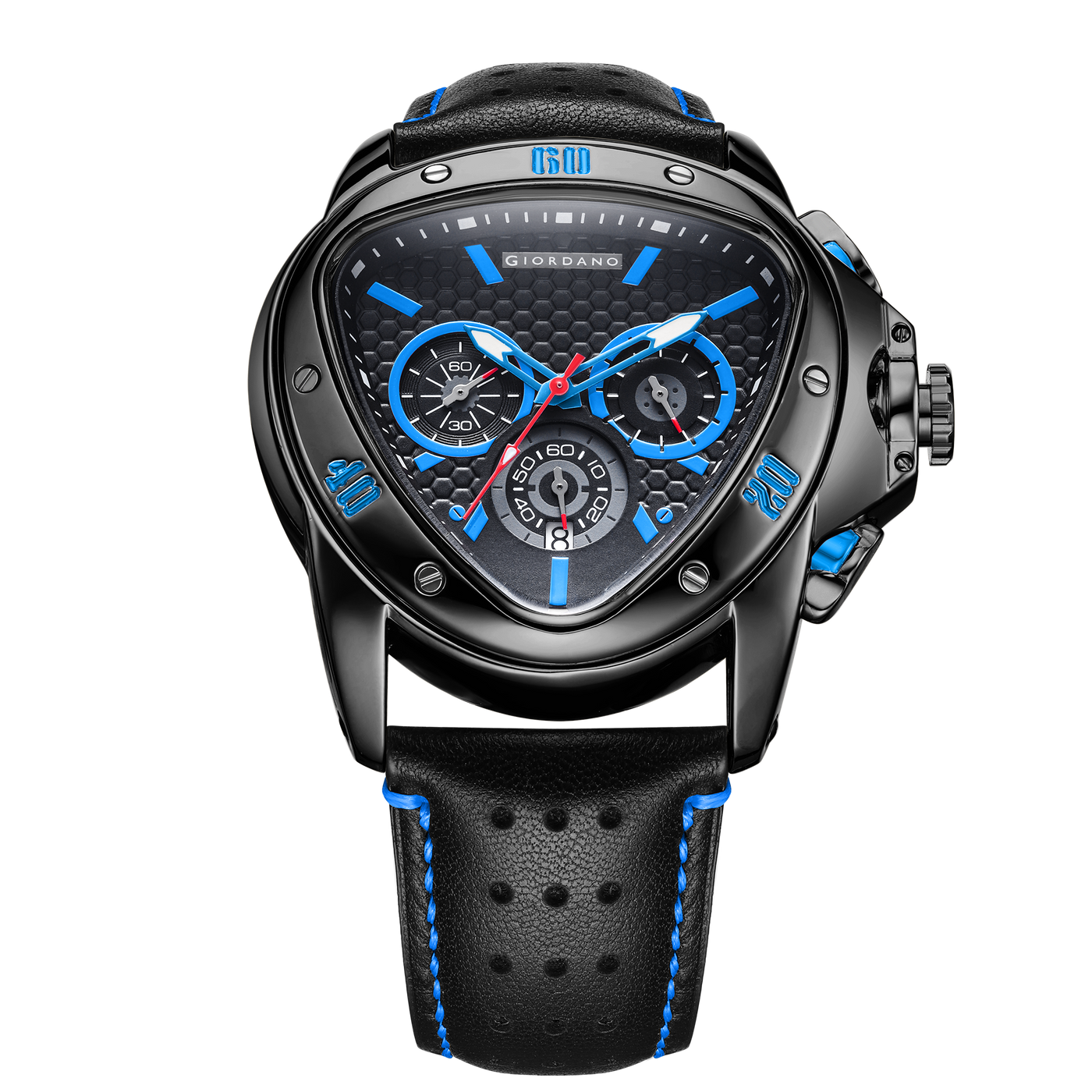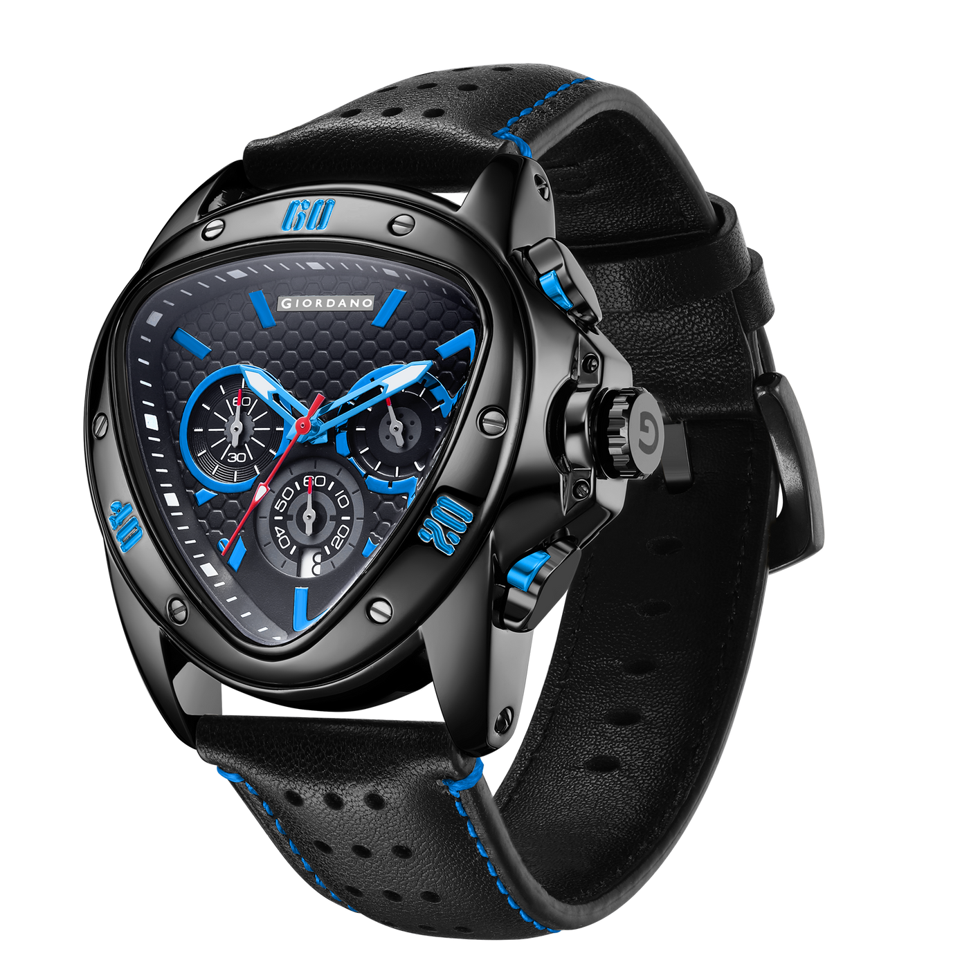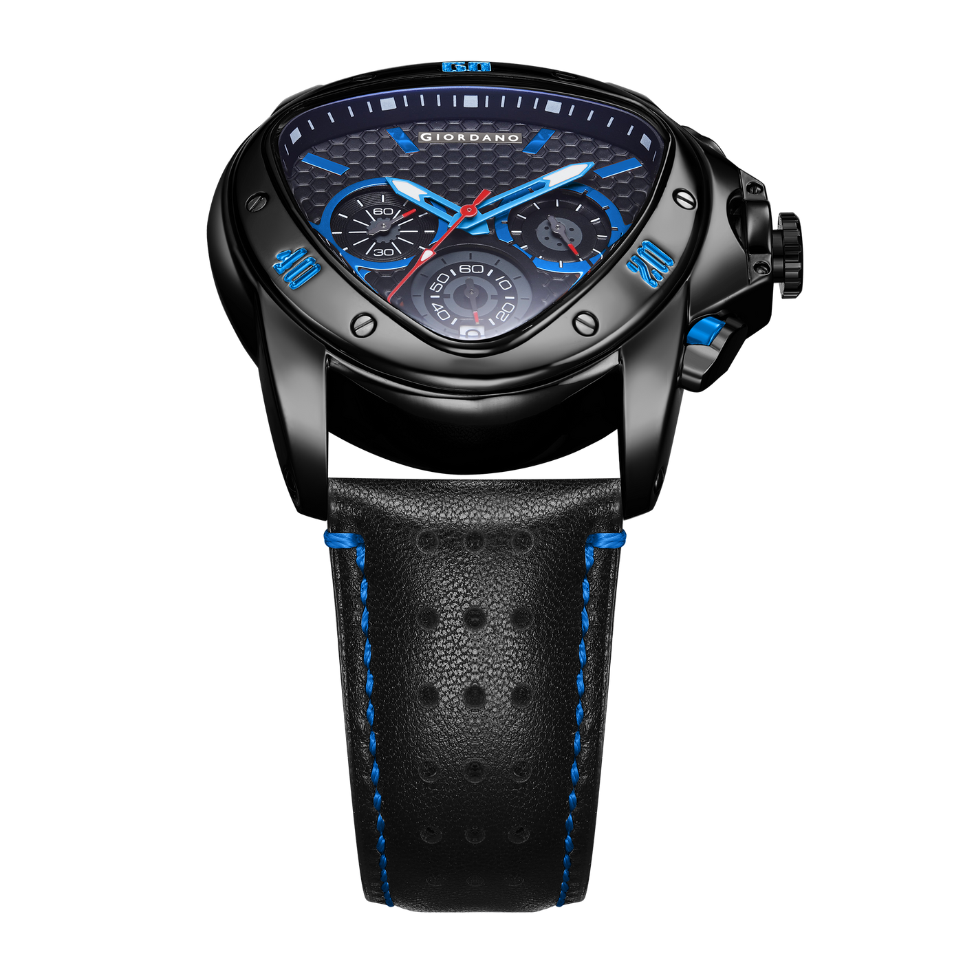 Giordano Multi Function Watch For Men -Unique Triangle Dial, Dual-Date Display With Leather Strap GZ-50132-01