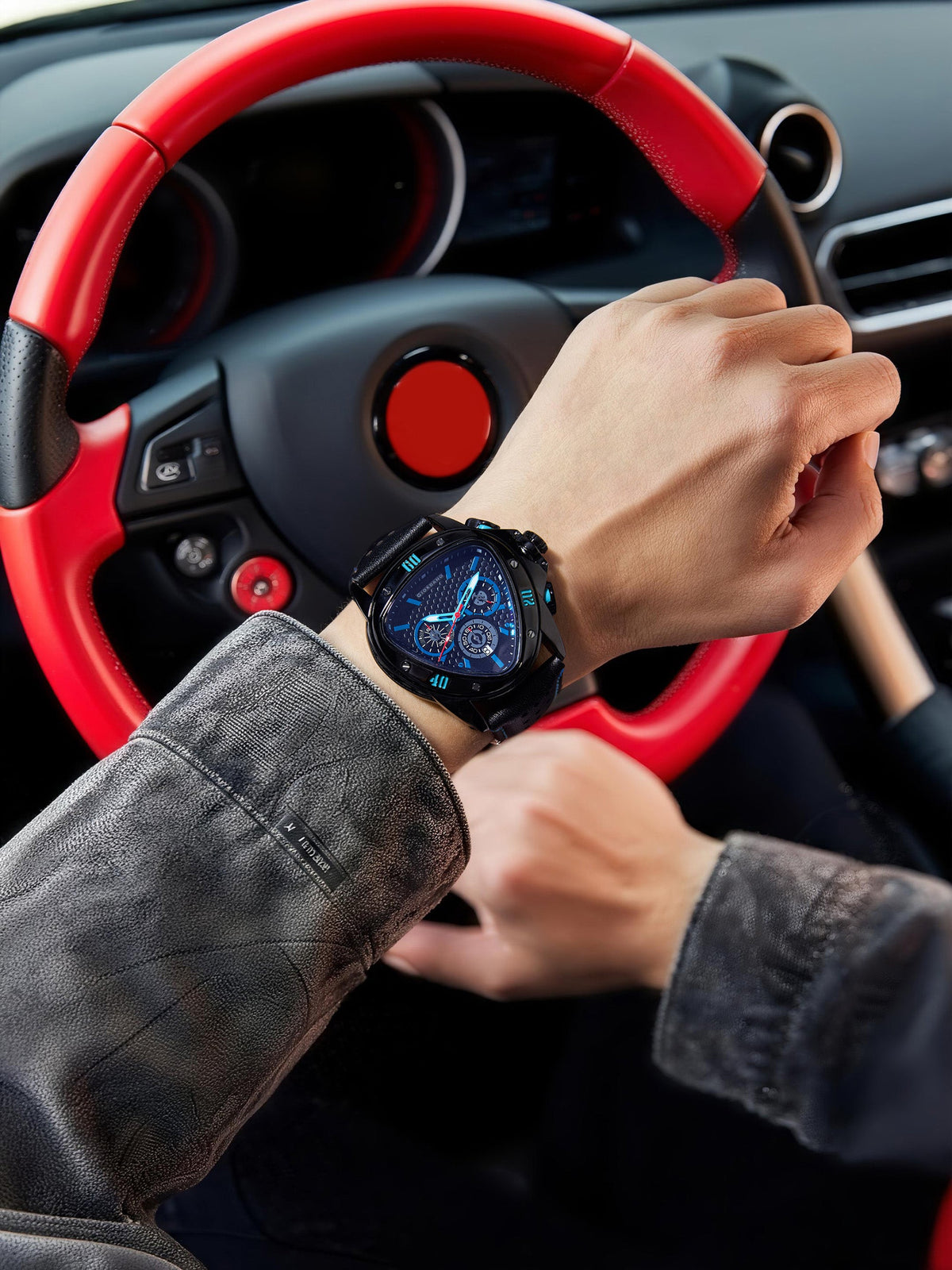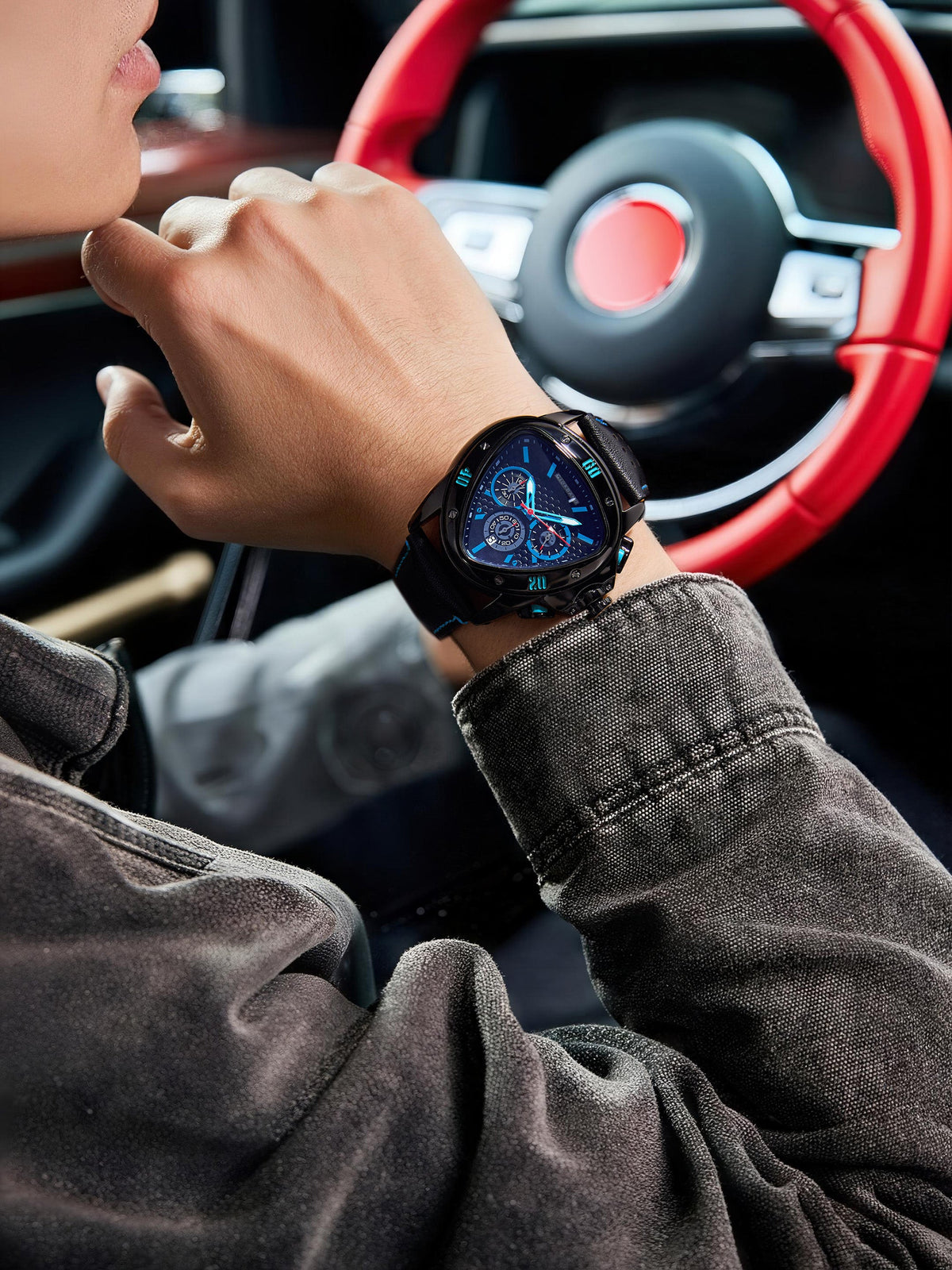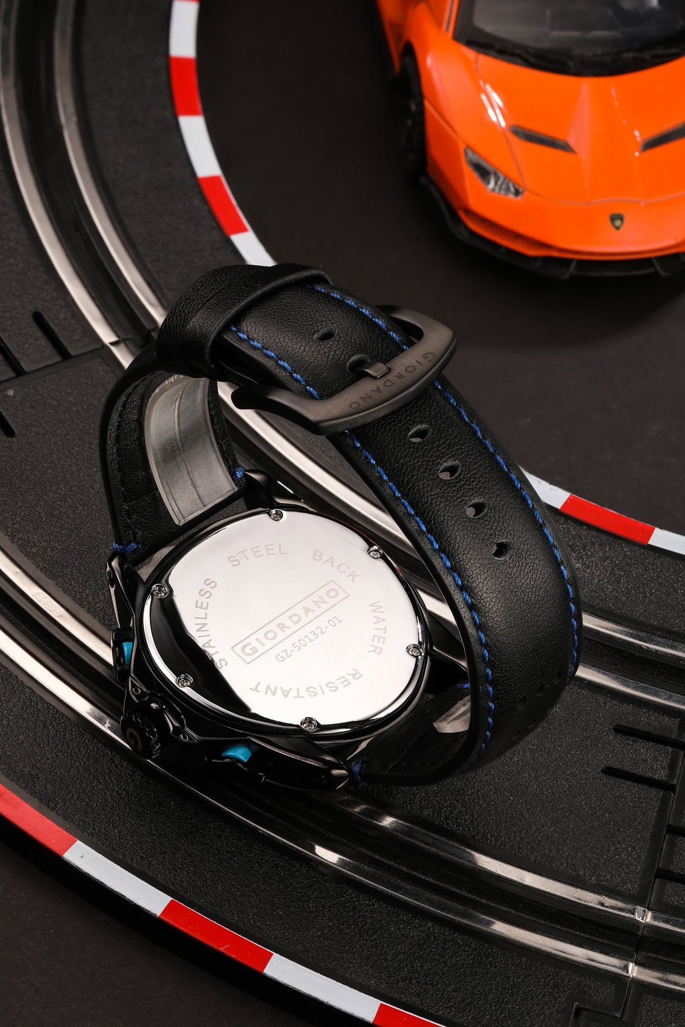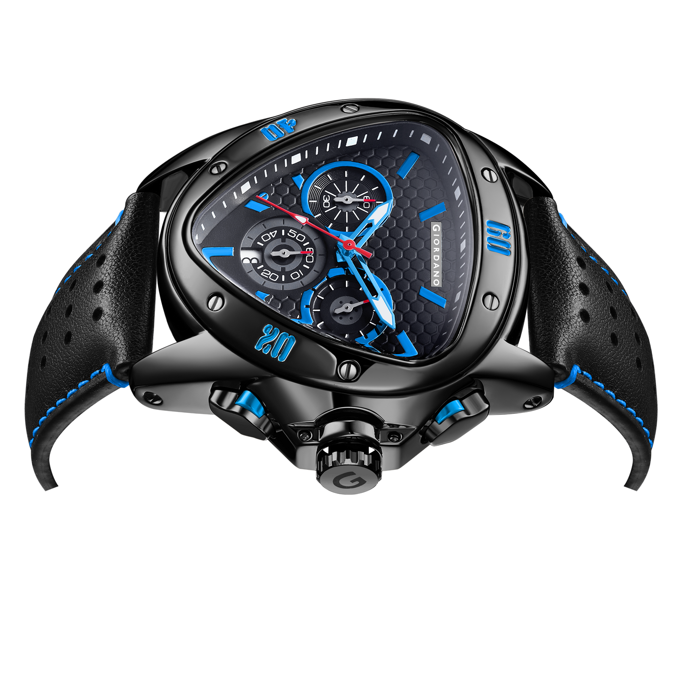 Giordano Multi Function Watch For Men -Unique Triangle Dial, Dual-Date Display With Leather Strap GZ-50132-01