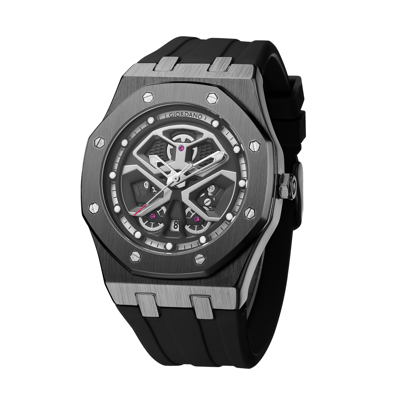 Giordano Skeleton style Dial Analog Watch for Men– Luxury Sport Watch with Silicone Strap & Brushed Metal Case – Bold & Modern Design | GZ-50146-01
