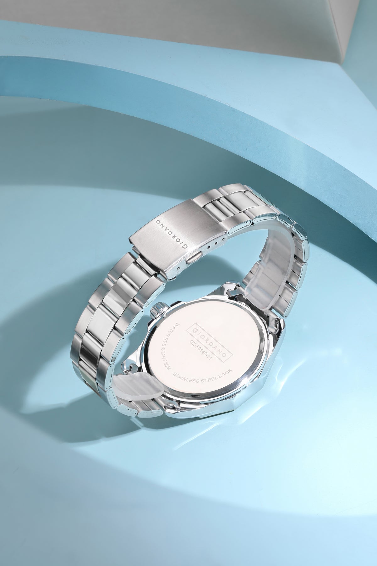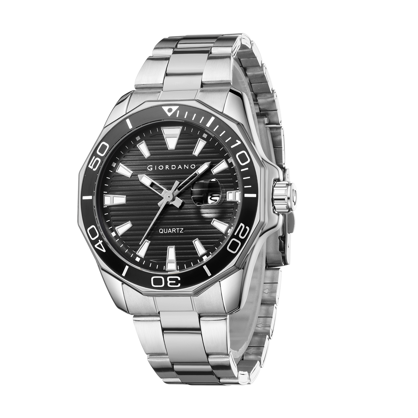 Giordano Stainless Steel Analog Watch for Men – Classic Sporty Design | Textured Dial, Quartz Movement and Date Display with Magnifier | GZ-50149-11