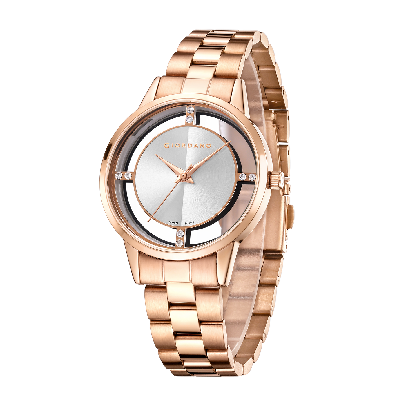 Giordano Analog Stylish Watch for Women with See-Through Dial with Crystal Accents and Stainless Steel Strap | GZ-60078-22