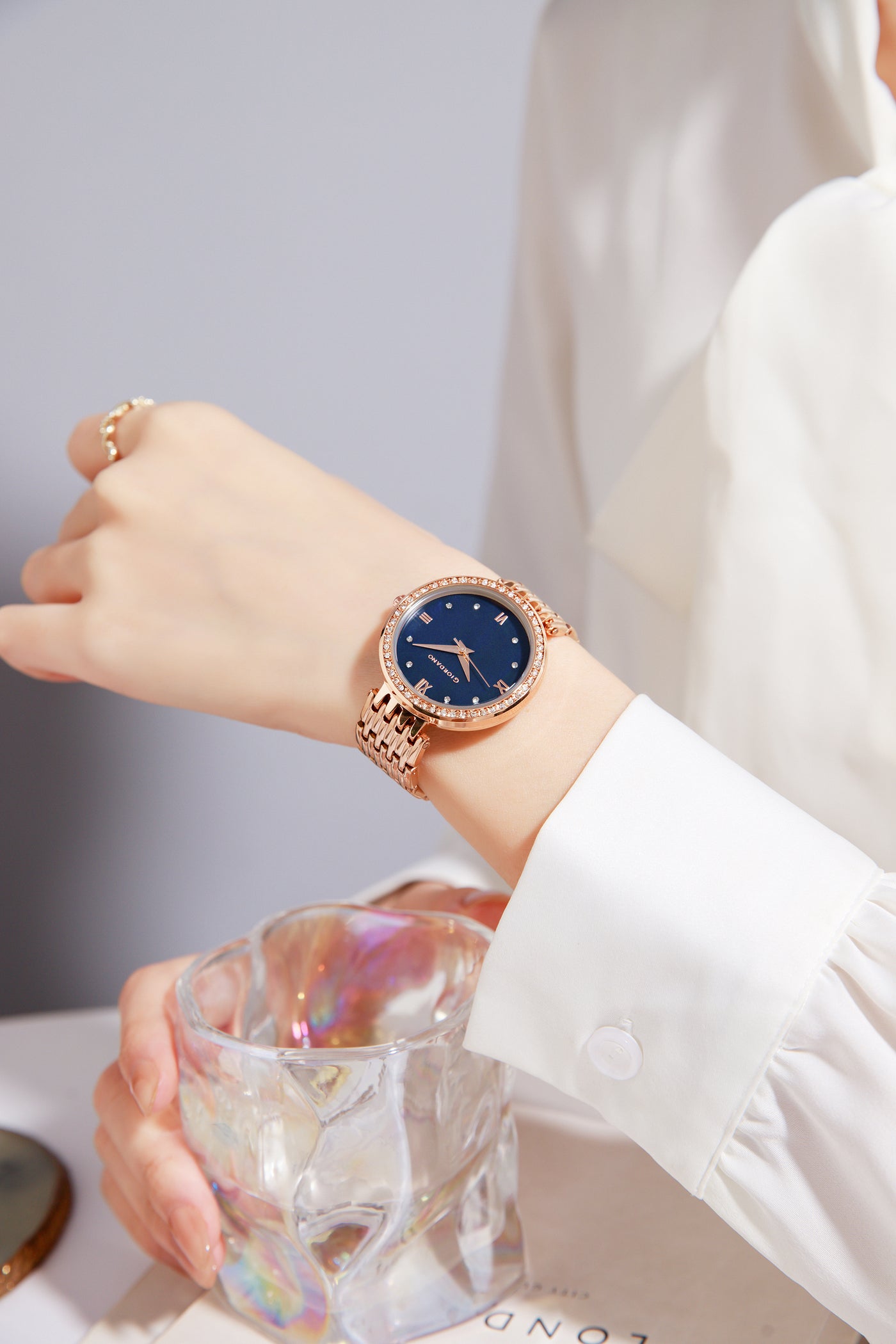 Giordano Analog Watch for Women with Stainless Steel Strap and Crystal Embellished Bezel, Roman Numerals | A2060-44