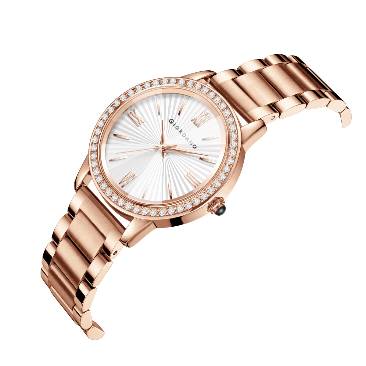 Giordano classic Watch for Women with Round Diamond Cut Glass Dial, Elegant Stainless Steel Strap with Quartz Movement | GZ-60118-44
