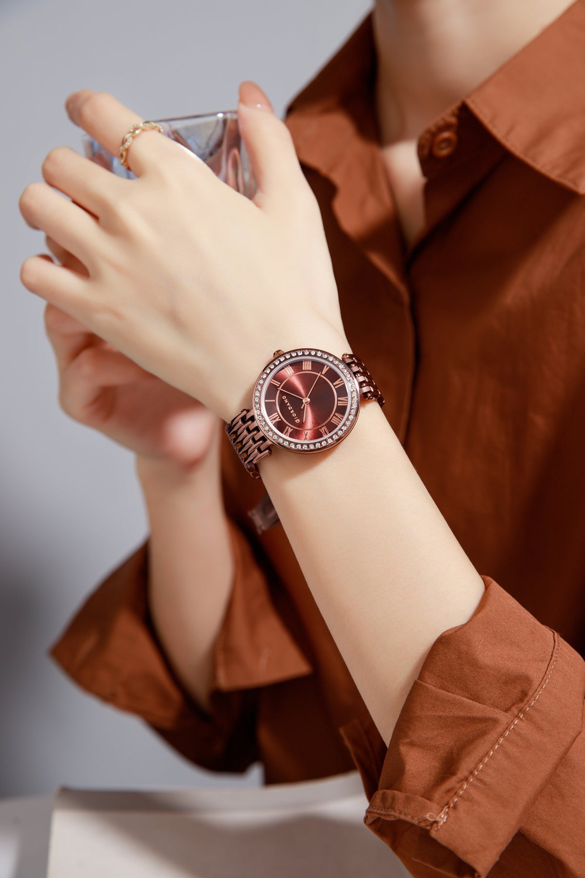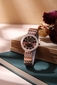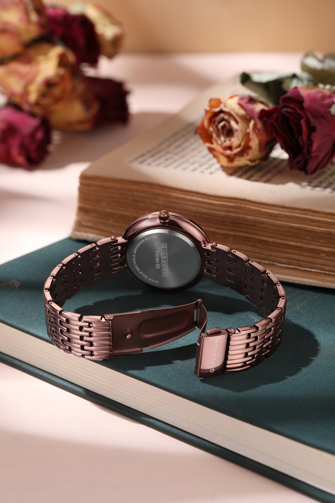 Giordano Eleganza Collection Watch for Women with Stainless Steel Strap and Crystal Embellished Bezel, Roman Numerals-A2083-55
