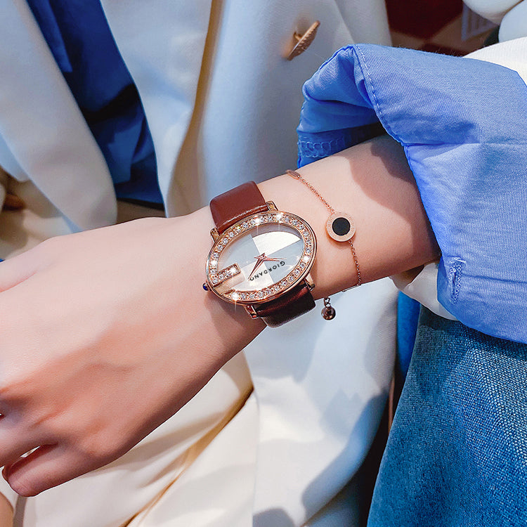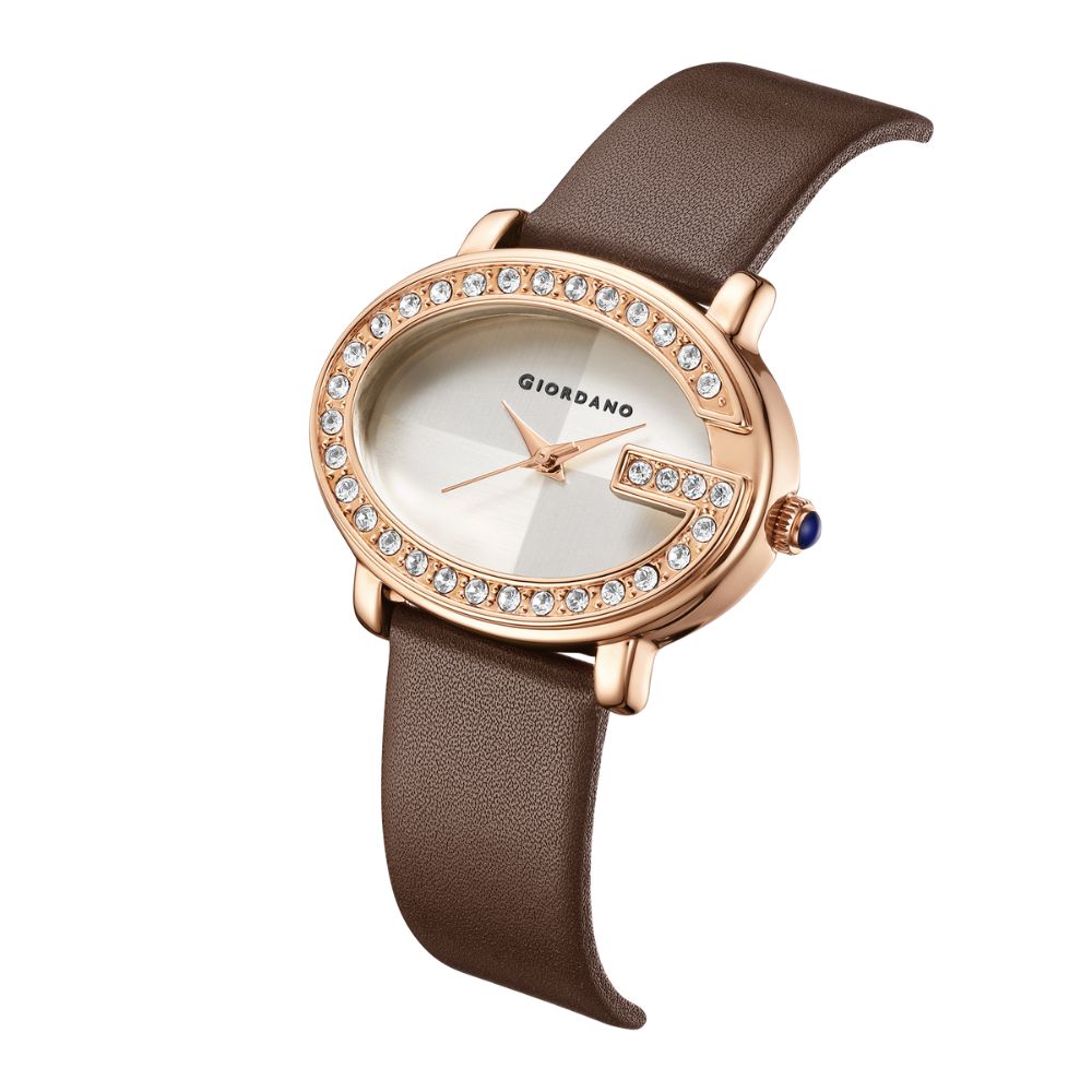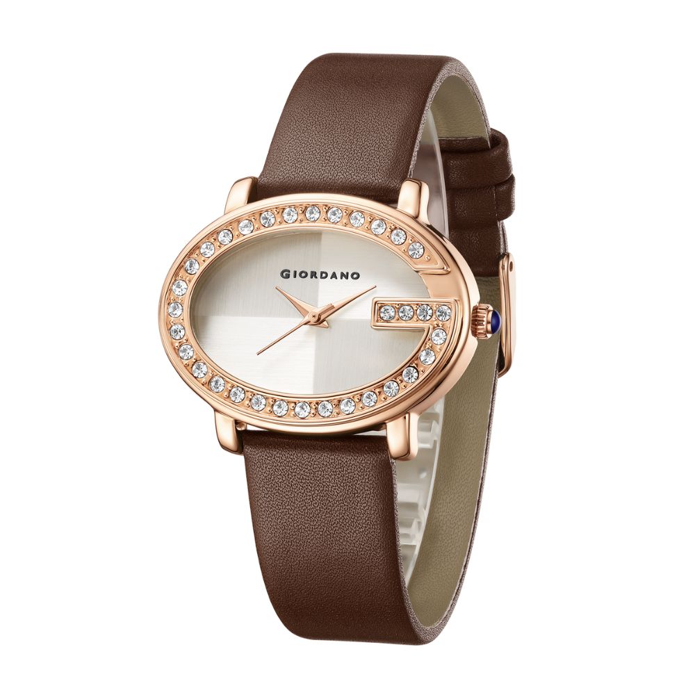 Giordano Monogram Watch for Women with Elegant Oval Shape Dial ,crystal bezel, Quartz Movement and Leather Strap | GZ-60105-02