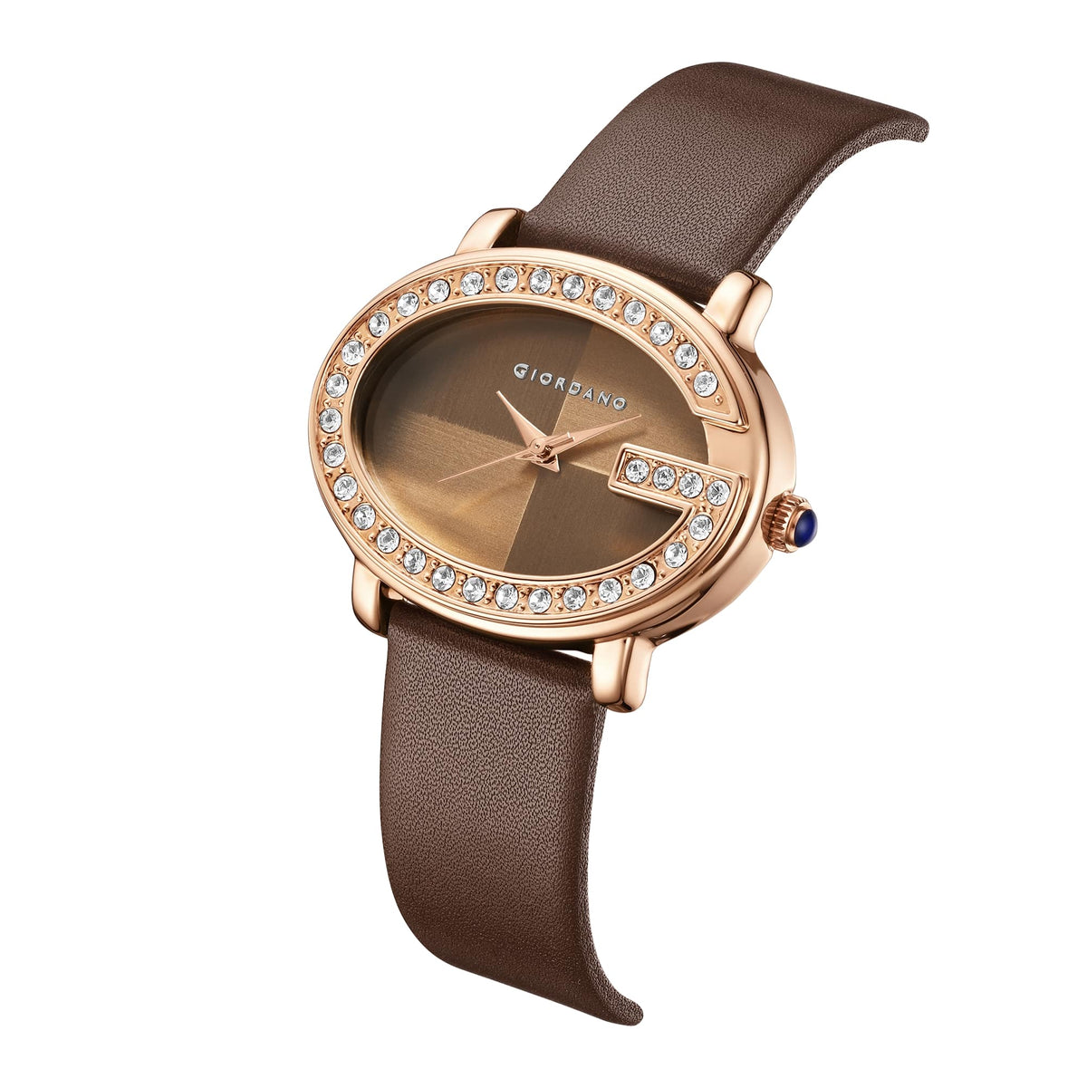 Giordano Monogram Watch for Women with Elegant Oval Shape Dial ,crystal bezel, Quartz Movement and Leather Strap | GZ-60105-03