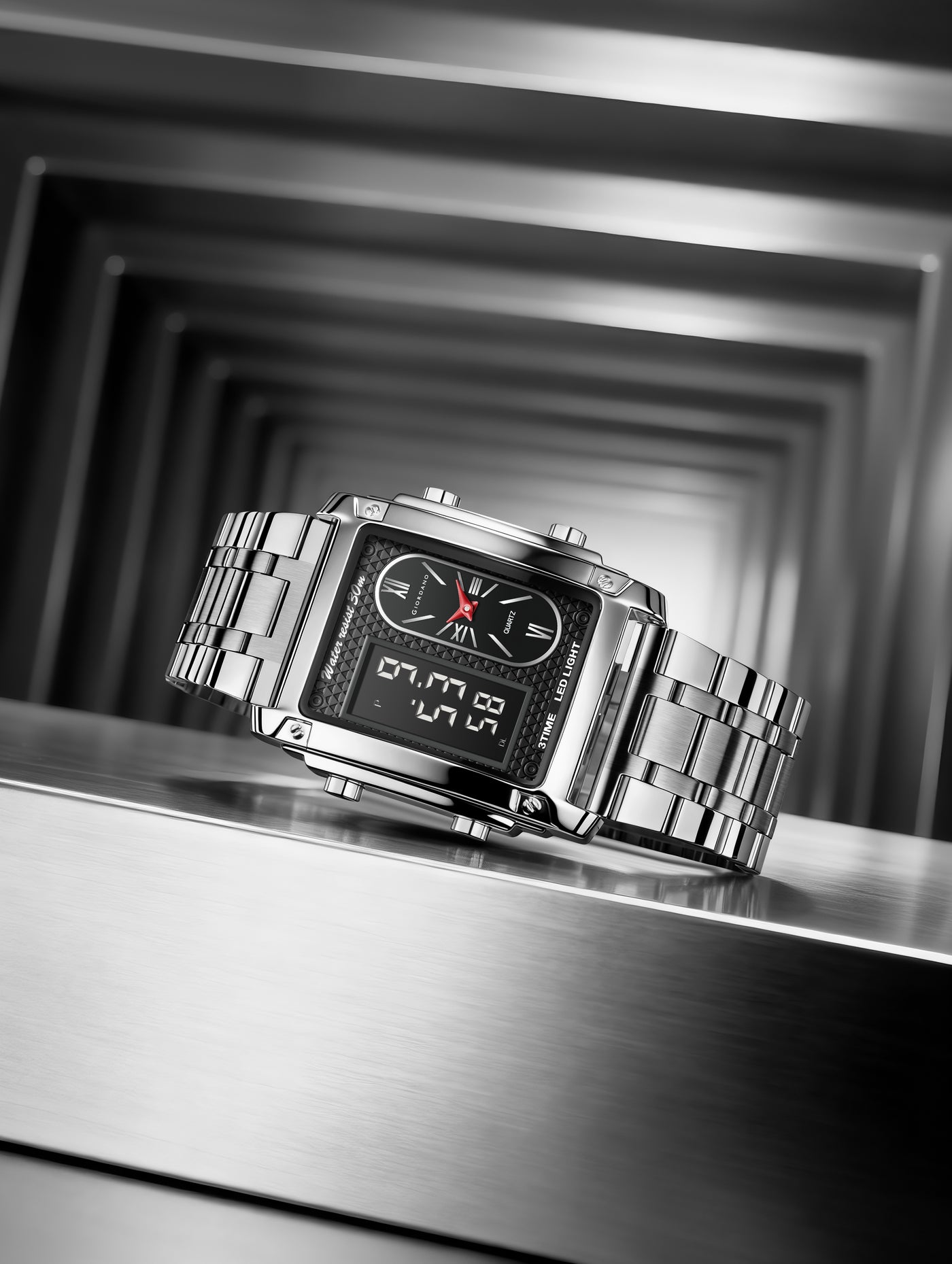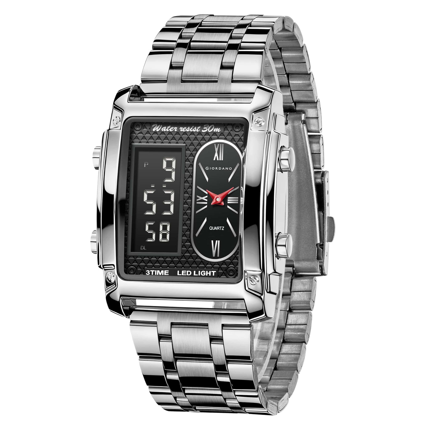 Giordano Analog-Digital Display Watch for Men Quartz Movement, LED Light, Dual Time, Date Function, Stainless Steel Strap - GZ-50184-33