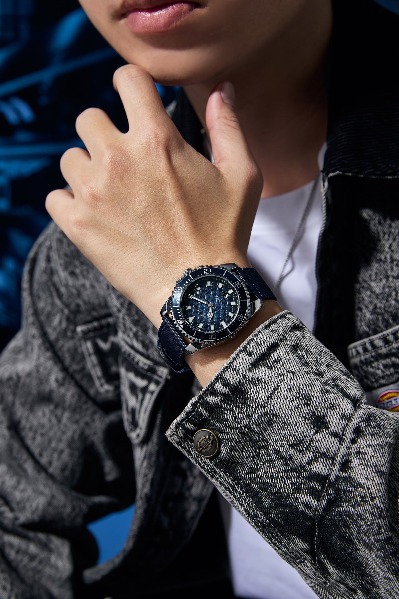 Striking Fish-Scale Texture: Stand out with a unique black textured dial featuring a precision fish-scale pattern, adding a bold, multidimensional look to your wrist.
