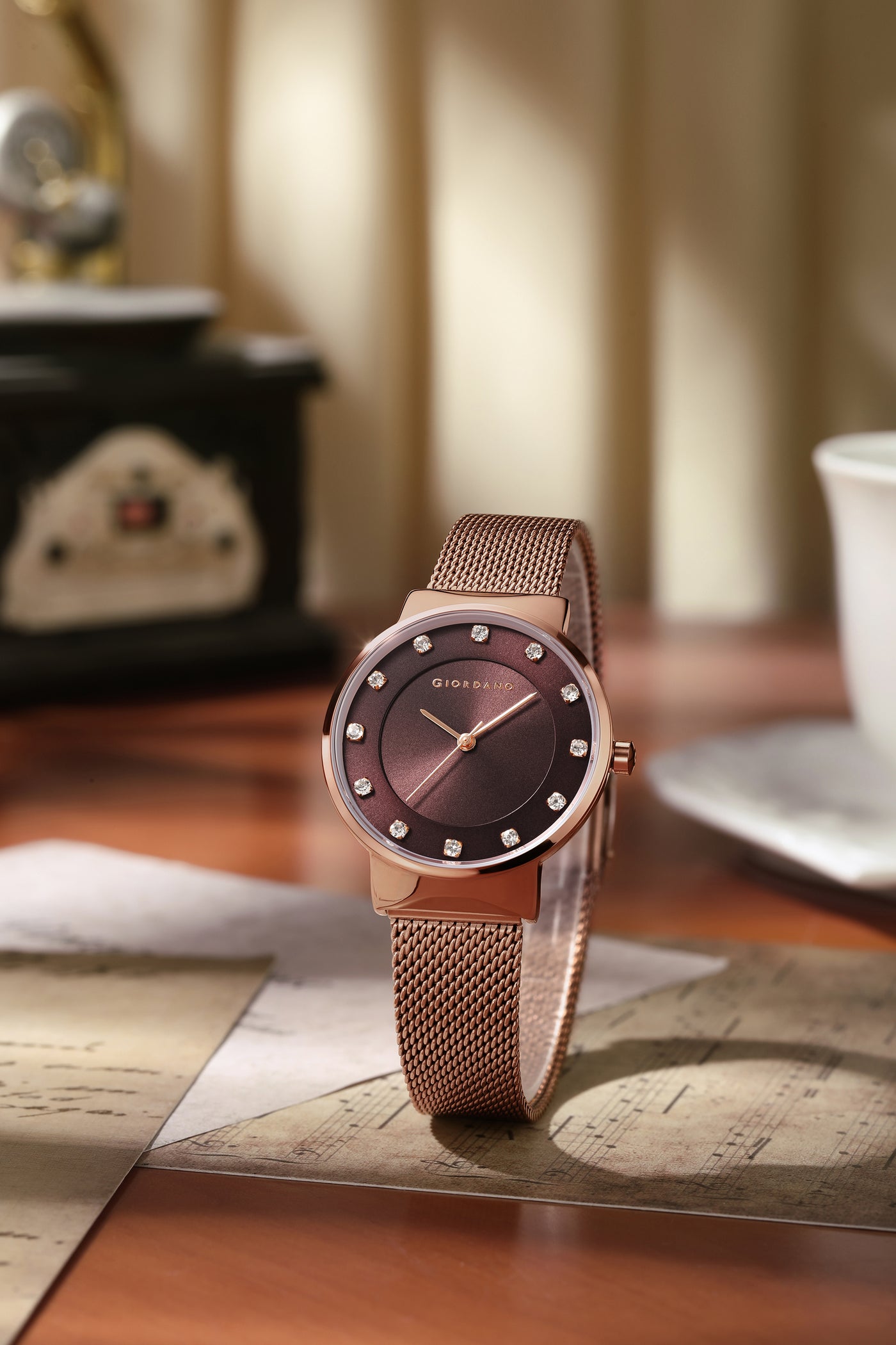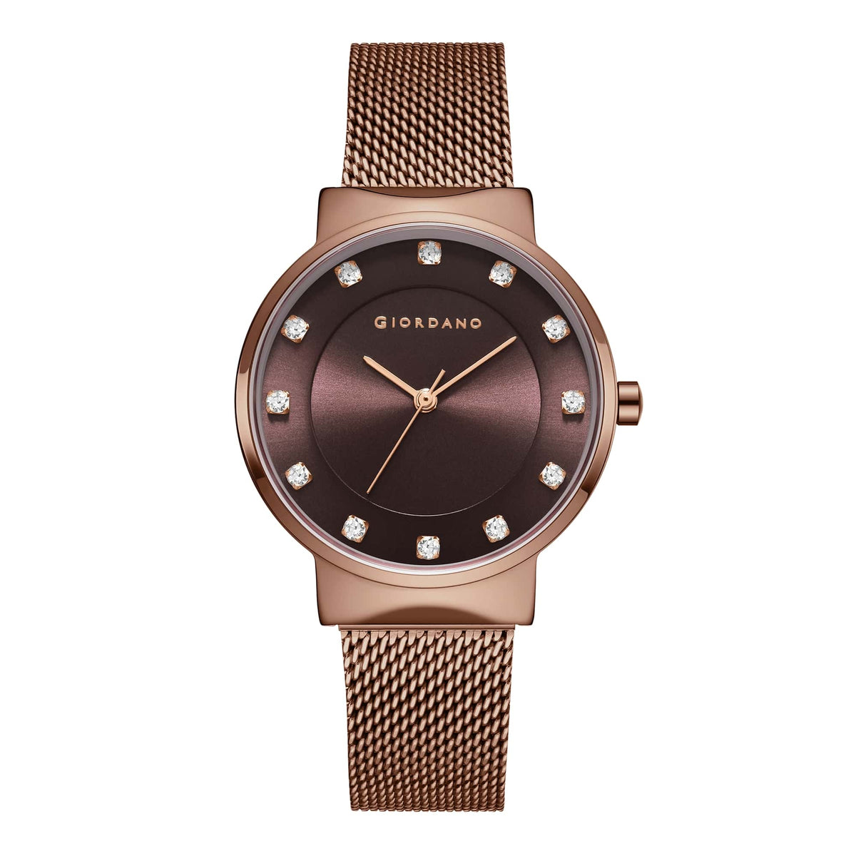 Giordano Analog Stylish Watch for Women | Water Resistant Simple and Fashion Watch Round Shape with Stainless Steel Case Wrist Watch for Ladies & Girls | Ideal Gift for Female - A2062-55