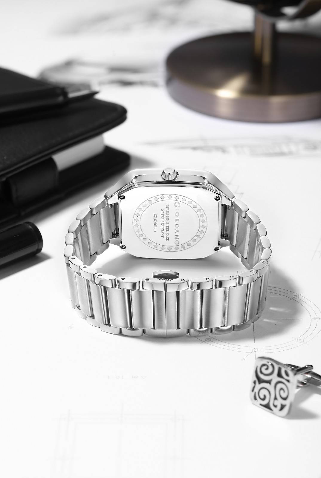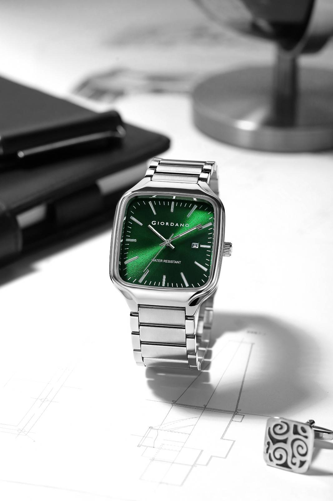 Giordano Analog Watch for Men – Square Dial, Stainless Steel Strap, Date Display, Water Resistant Classic Dress Watch | GZ-50163-33