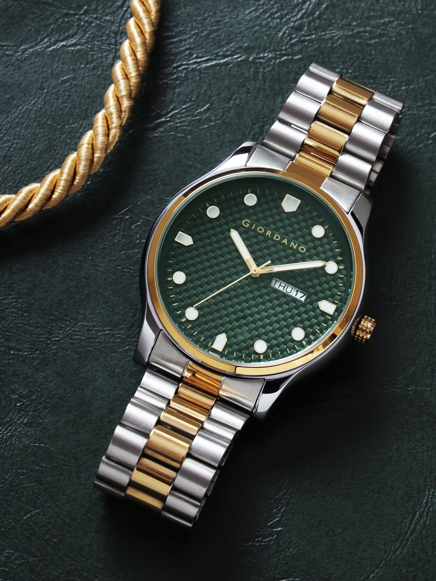 Giordano Analog Watch for Men with Two-Tone Stainless Steel Strap & Textured Dial, Day-Date Display, Elegant Casual Style | GZ-50122-11