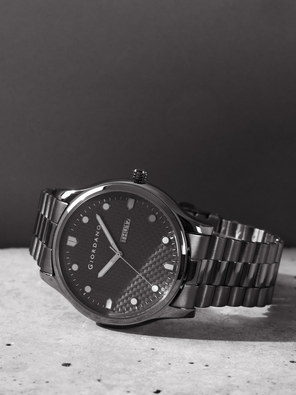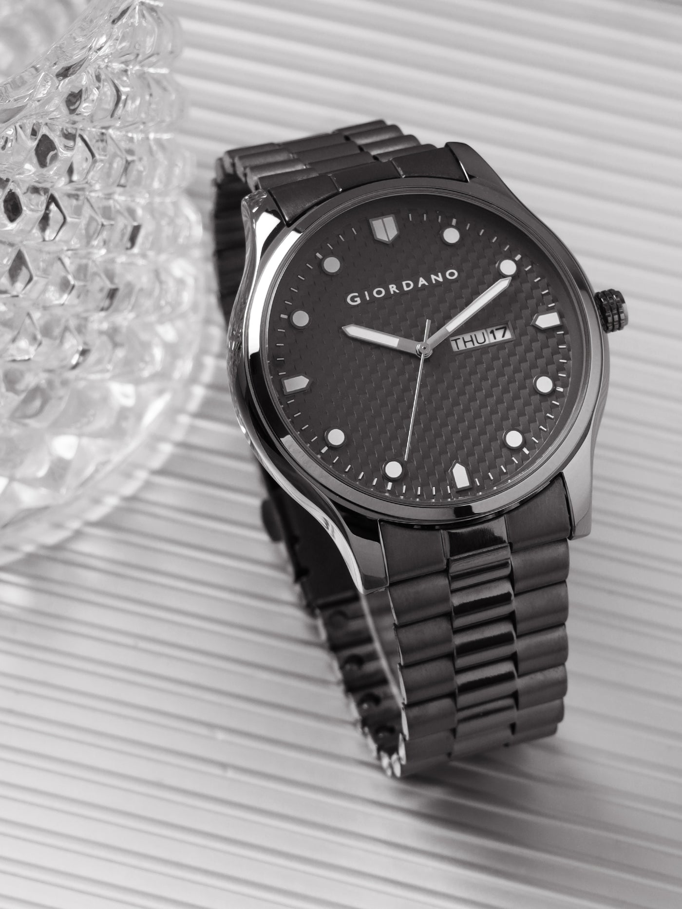 Giordano Analog Watch for Men with Two-Tone Stainless Steel Strap & Textured Dial, Day-Date Display, Elegant Casual Style | GZ-50122-22