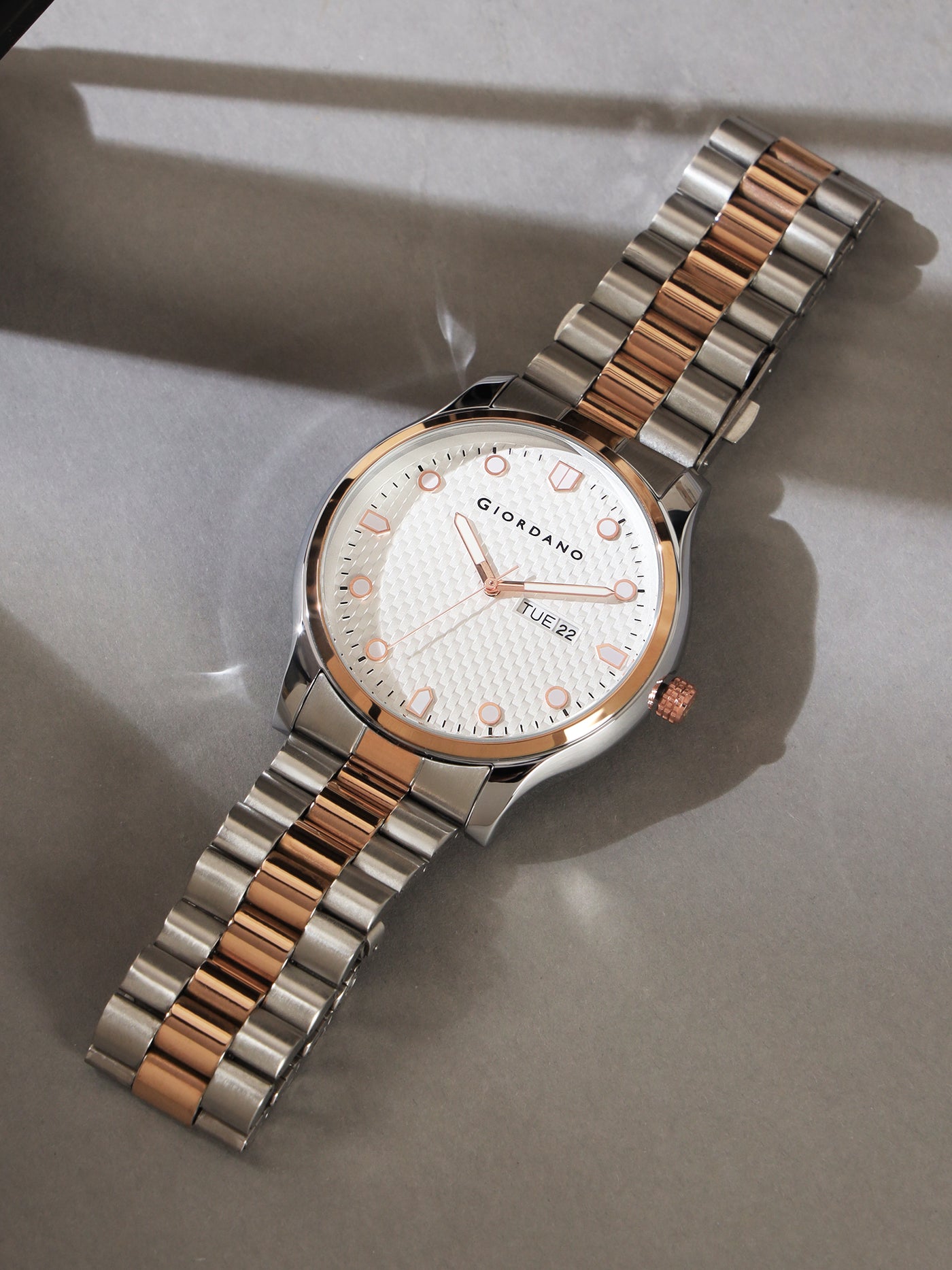 Giordano Analog Watch for Men with Two-Tone Stainless Steel Strap & Textured Dial, Day-Date Display, Elegant Casual Style | GZ-50122-33