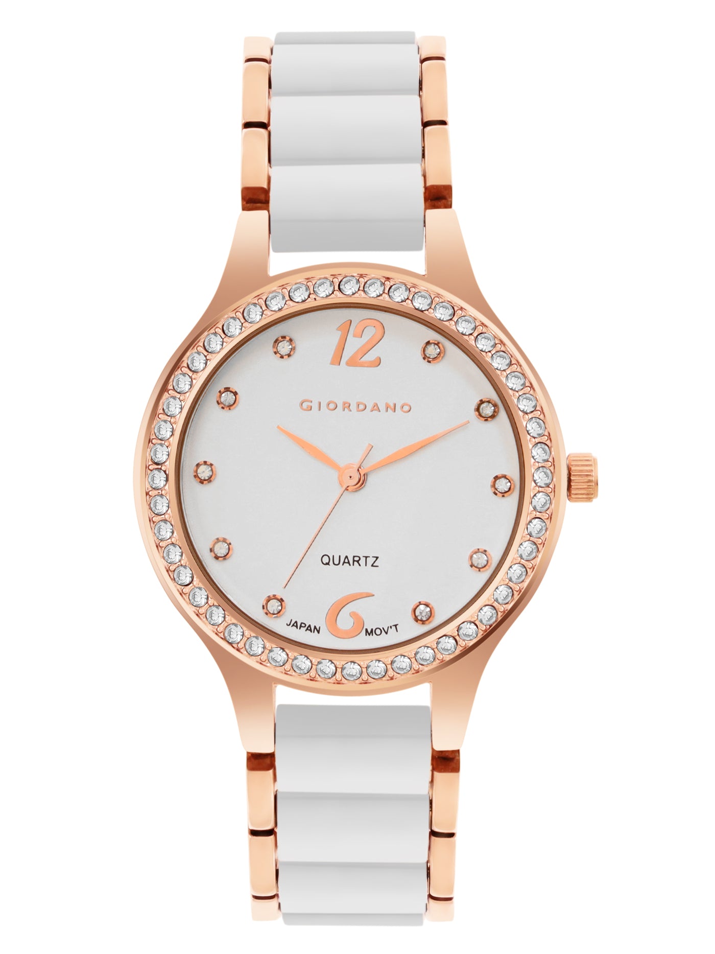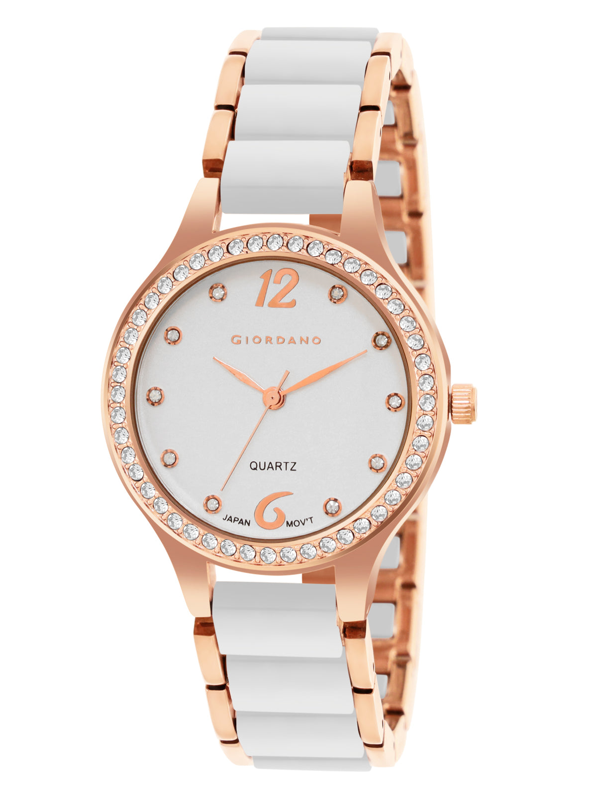 Giordano Analog Watch for Women, Diamond-Set with Metal Strap Ladies Water Resistant Wrist Watch for Female | GZ-60065-33