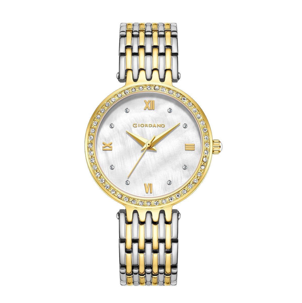 Giordano Analog Watch for Women with Stainless Steel Strap and Crystal Embellished Bezel, Roman Numerals | A2060-55