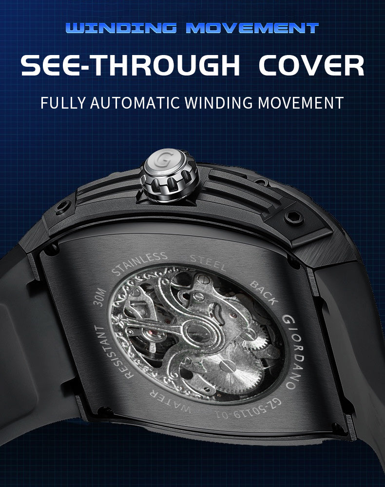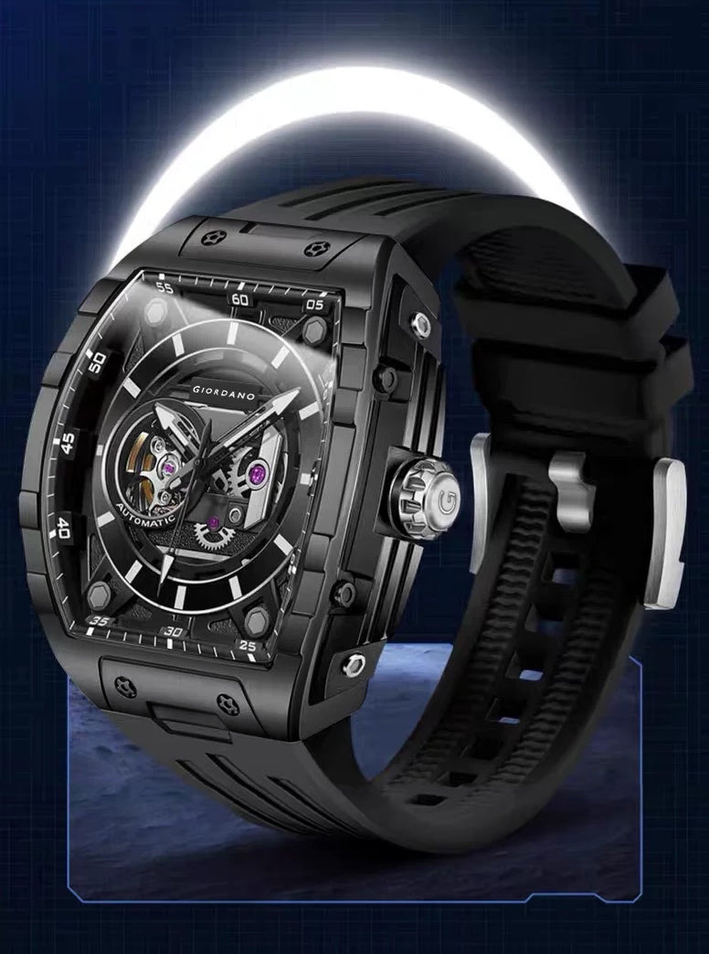 Giordano Automatic Mechanical Self-Winding Men's Analog Watch 46mm Silicone Strap 30M Water-Resistant Stylish Gift for Men | GZ-50119-01