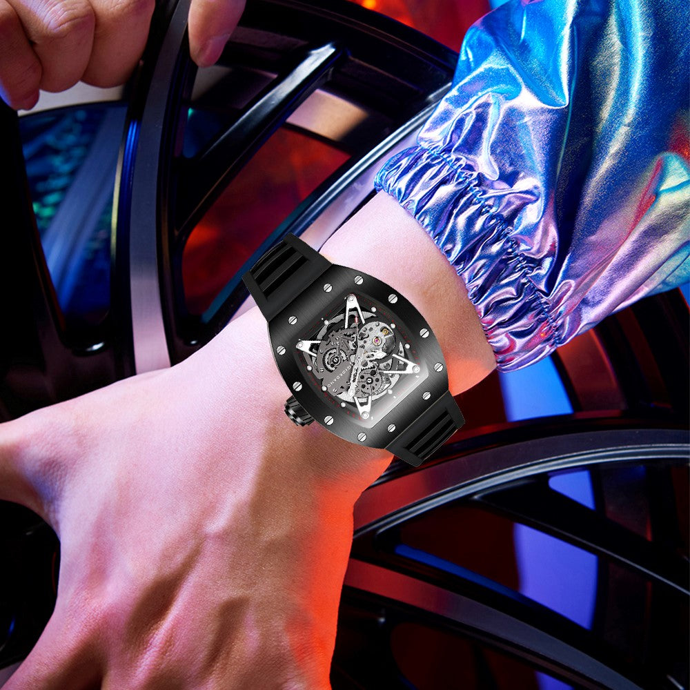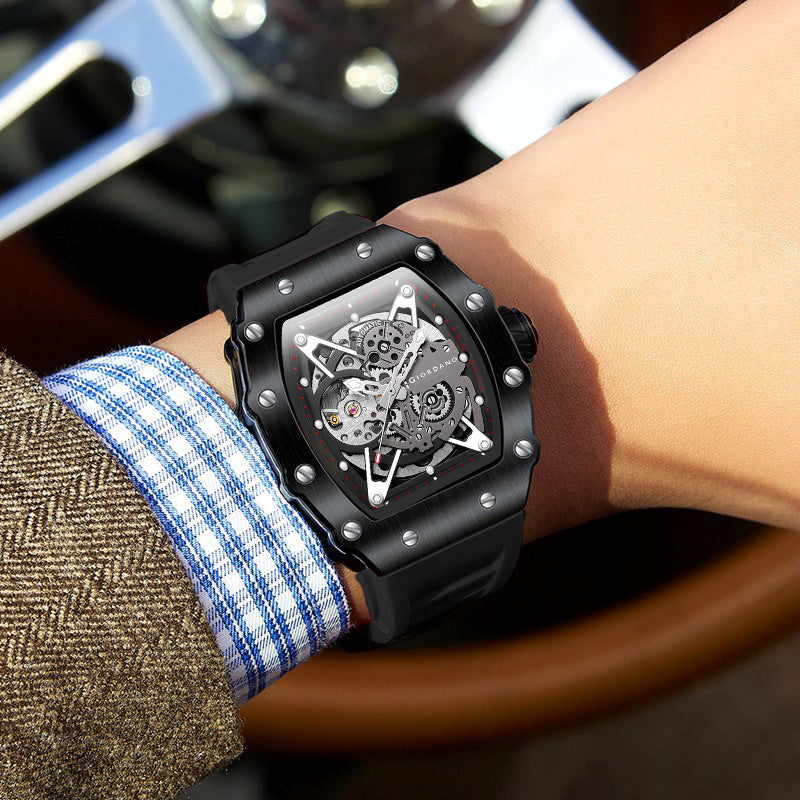 Giordano Automatic Wrist Watch for Men - Open Skeleton Dial | Brushed Steel Case Mechanical Movement with Silicone Strap | GZ-50145-01