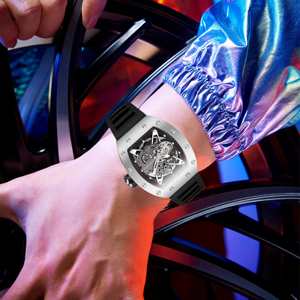 Giordano Automatic Wrist Watch for Men - Open Skeleton Dial | Brushed Steel Case Mechanical Movement with Silicone Strap | GZ-50145-02