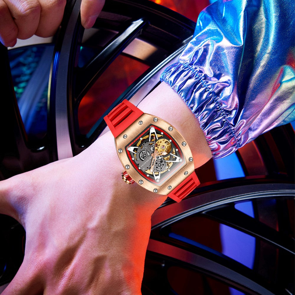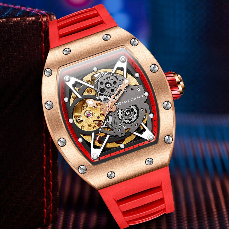 Giordano Automatic Wrist Watch for Men - Open Skeleton Dial | Brushed Steel Case Mechanical Movement with Silicone Strap | GZ-50145-03