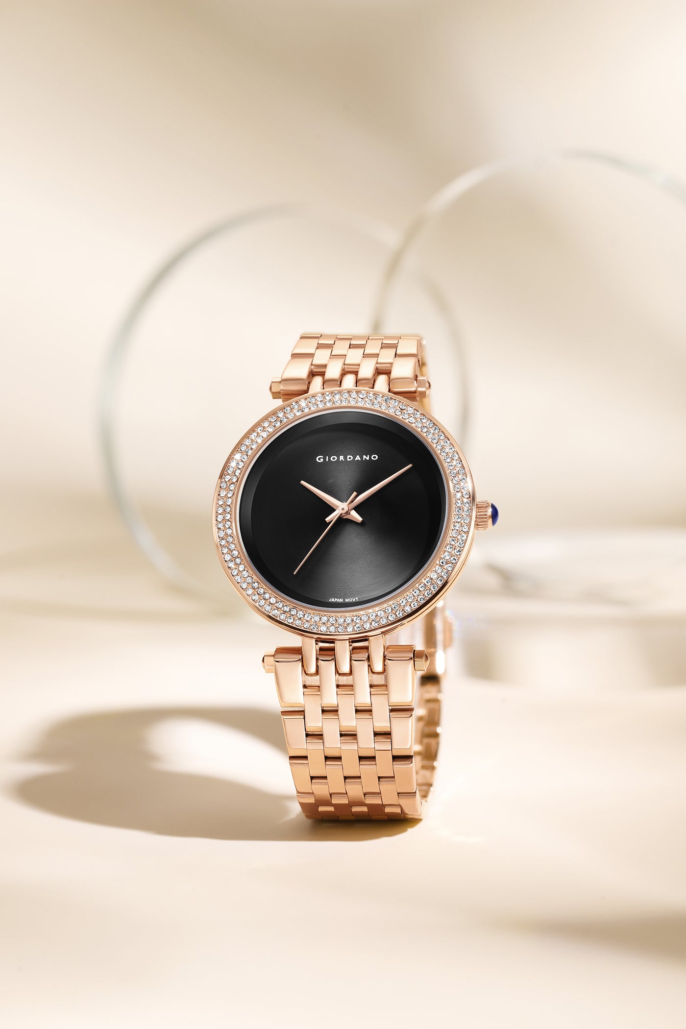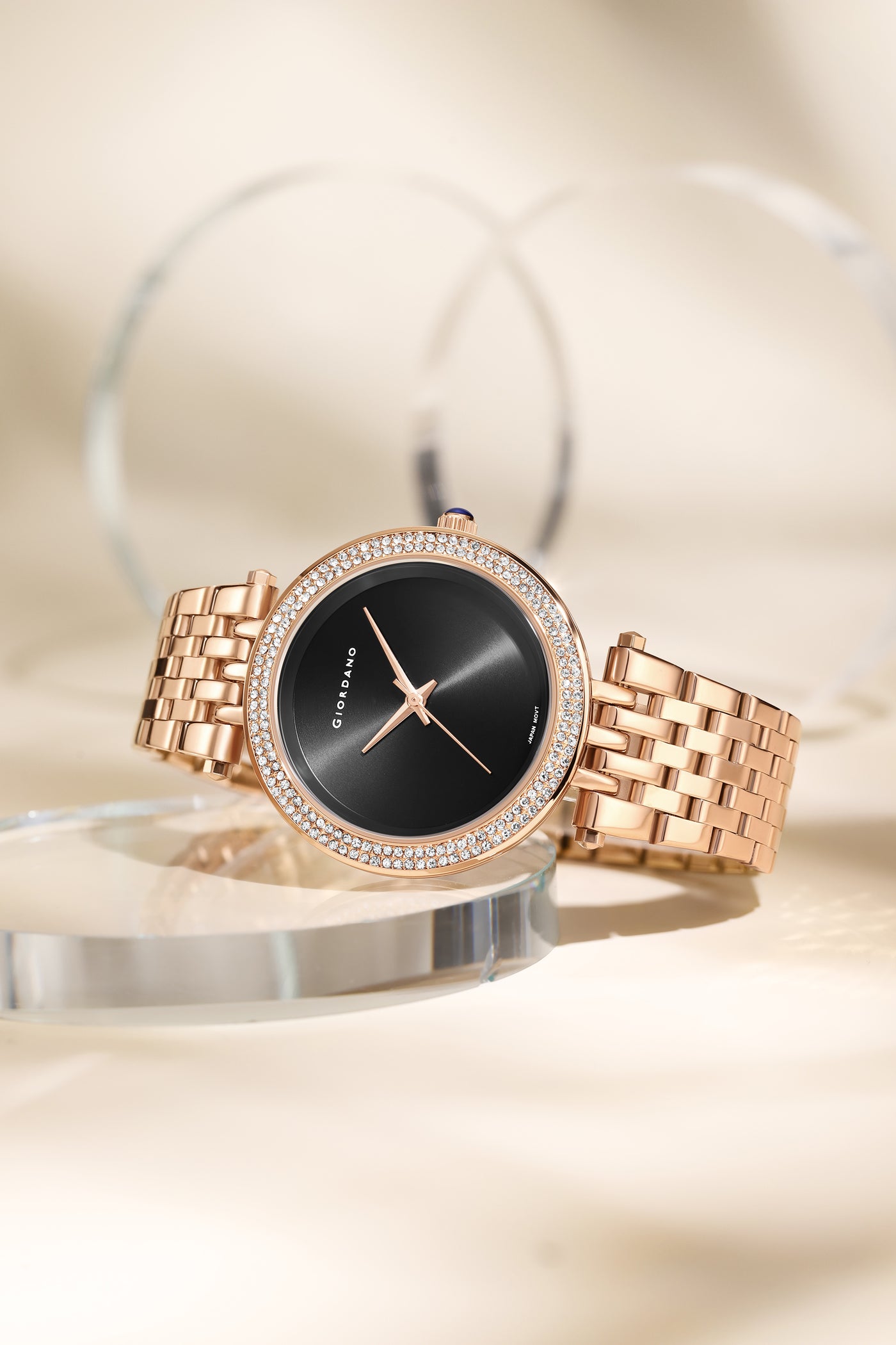 Giordano Classic Analog Watch for Women with Crystal-Studded Bezel and Stainless Steel Strap GZ-60015-33