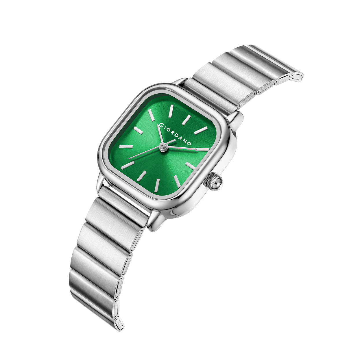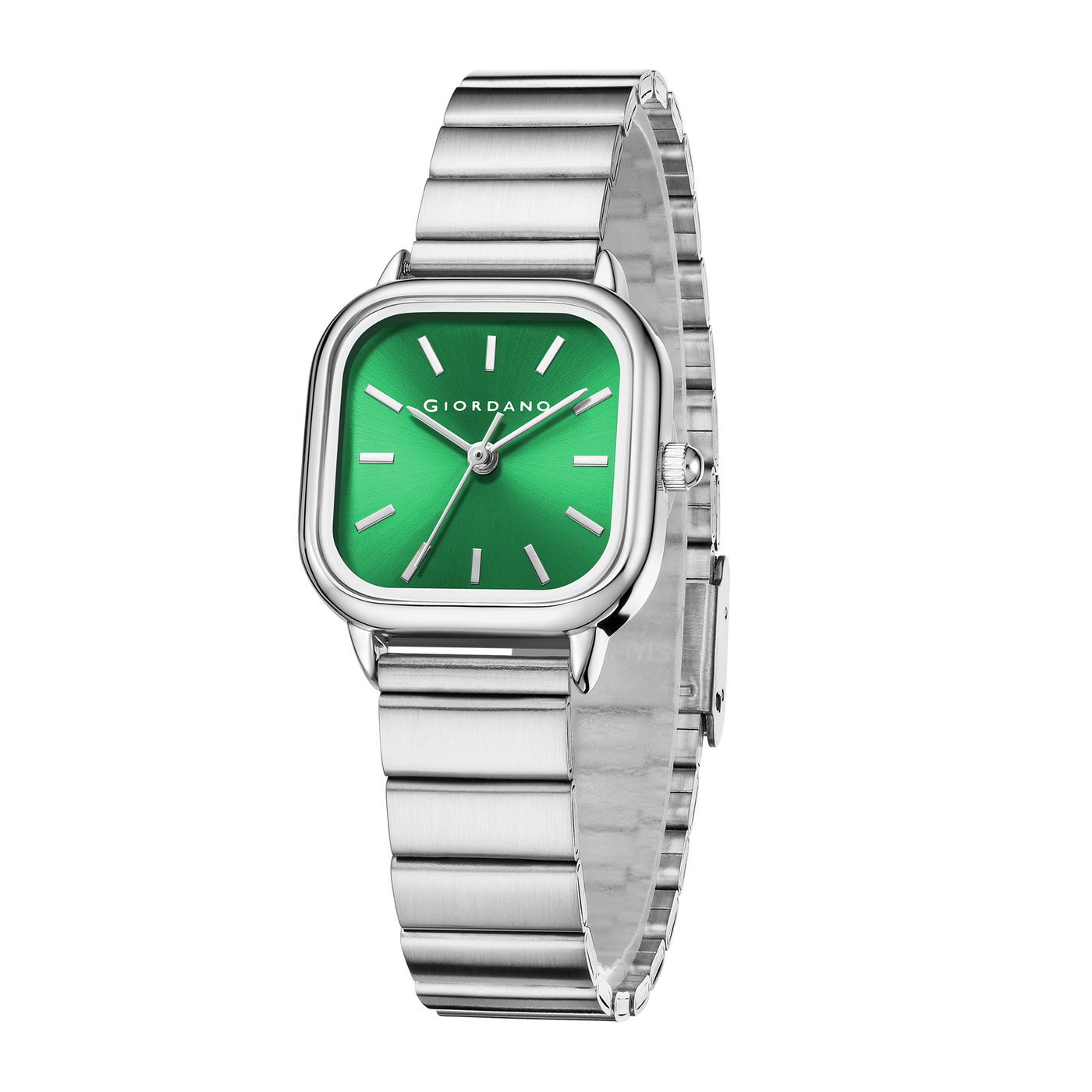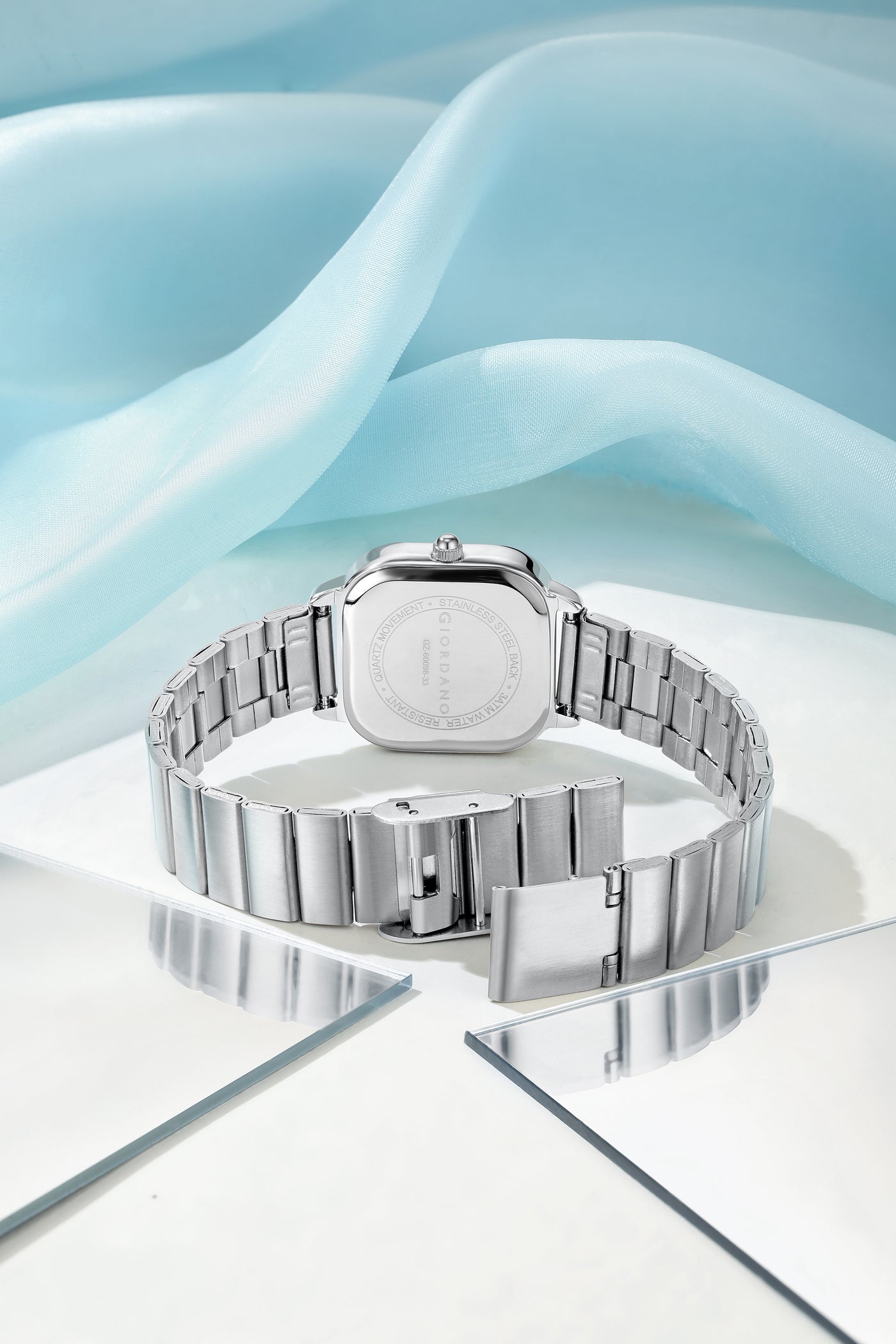 Giordano Classic Square Watch for Women – Polished Stainless Steel Strap, Minimalist Compact Design | GZ-60098-33
