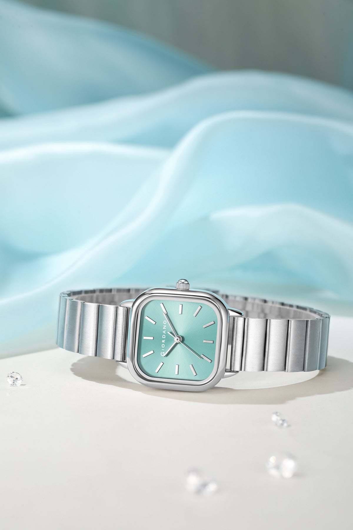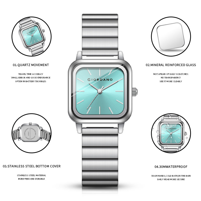 Giordano Classic Square Watch for Women – Polished Stainless Steel Strap, Minimalist Compact Design | GZ-60098-55