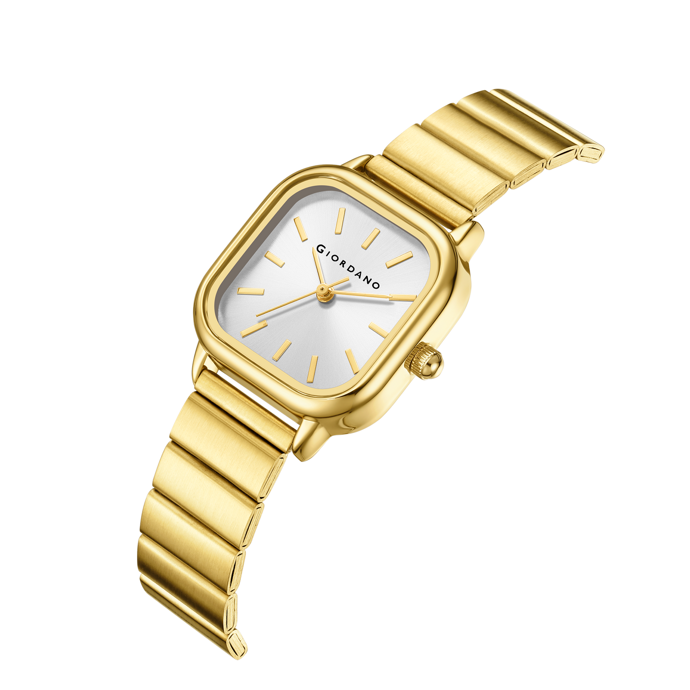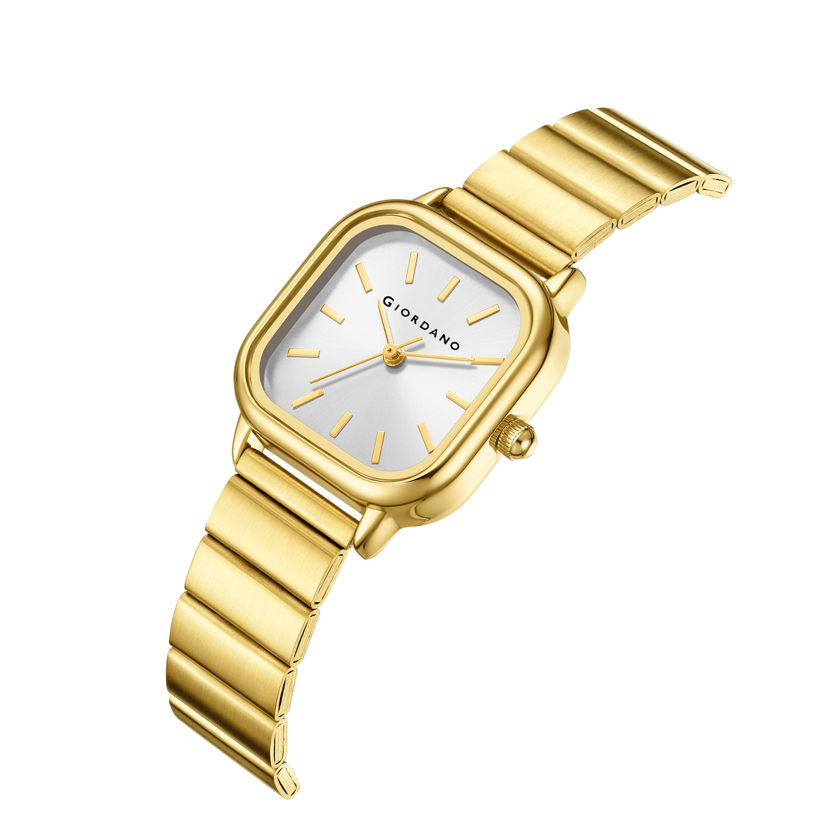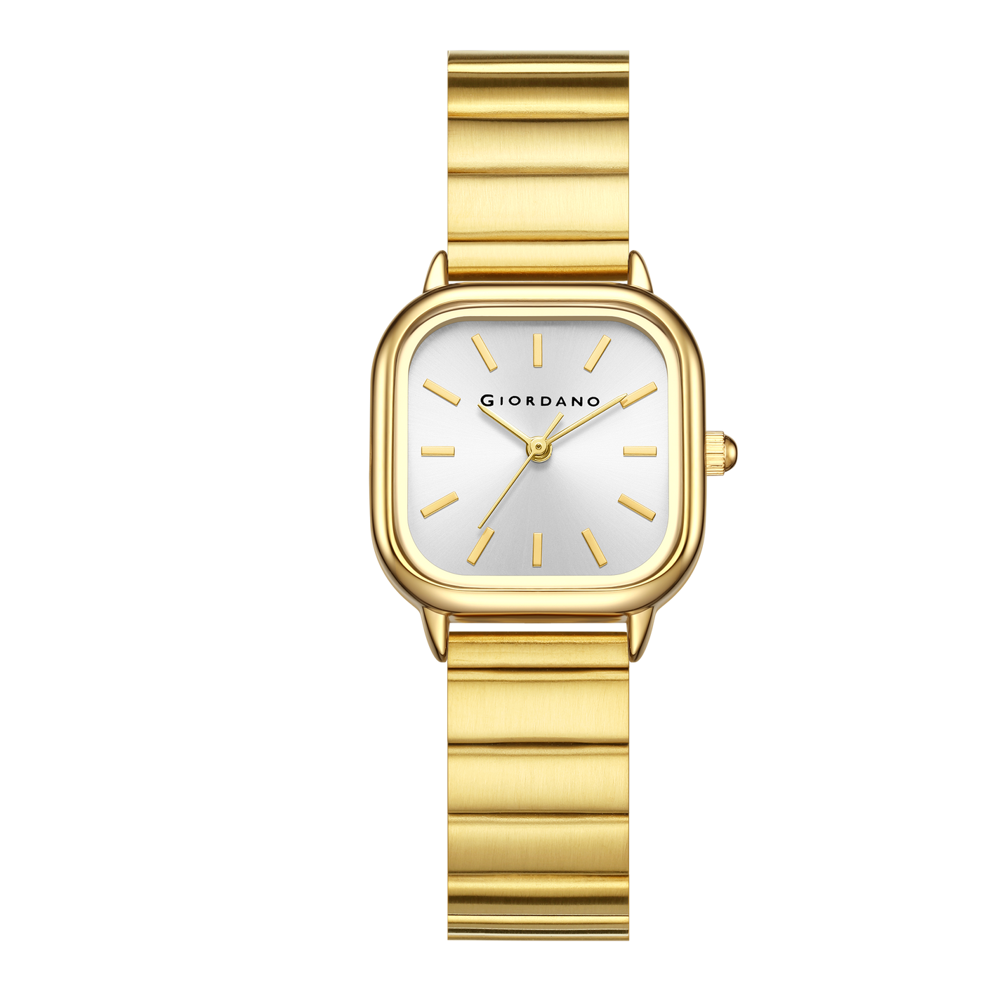 Giordano Classic Square Watch for Women – Polished Stainless Steel Strap, Minimalist Compact Design | GZ-60098-66
