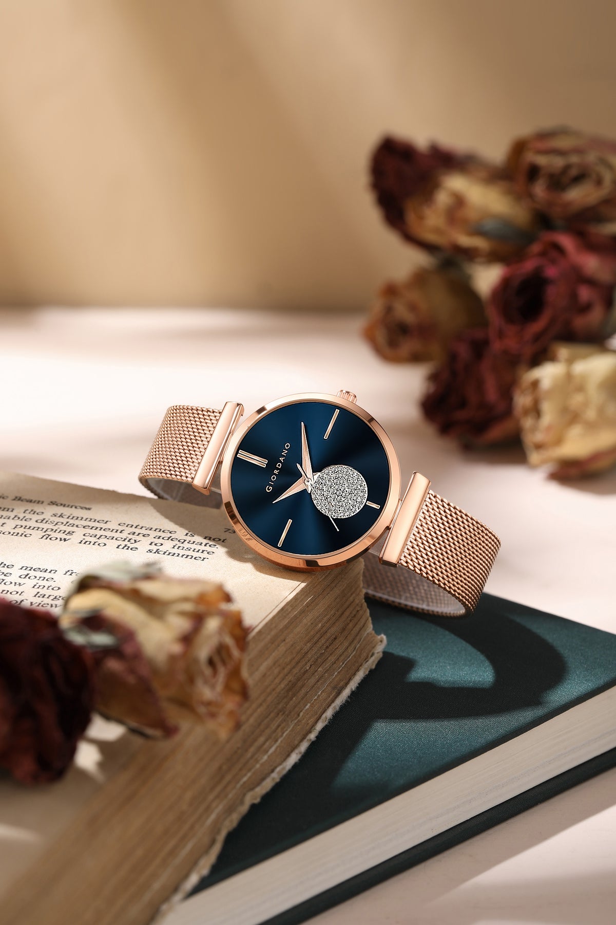 Giordano Eleganza Collection Analog Watch for Women with Crystal Studded Dial and Metallic Mesh Strap GD-4066-44