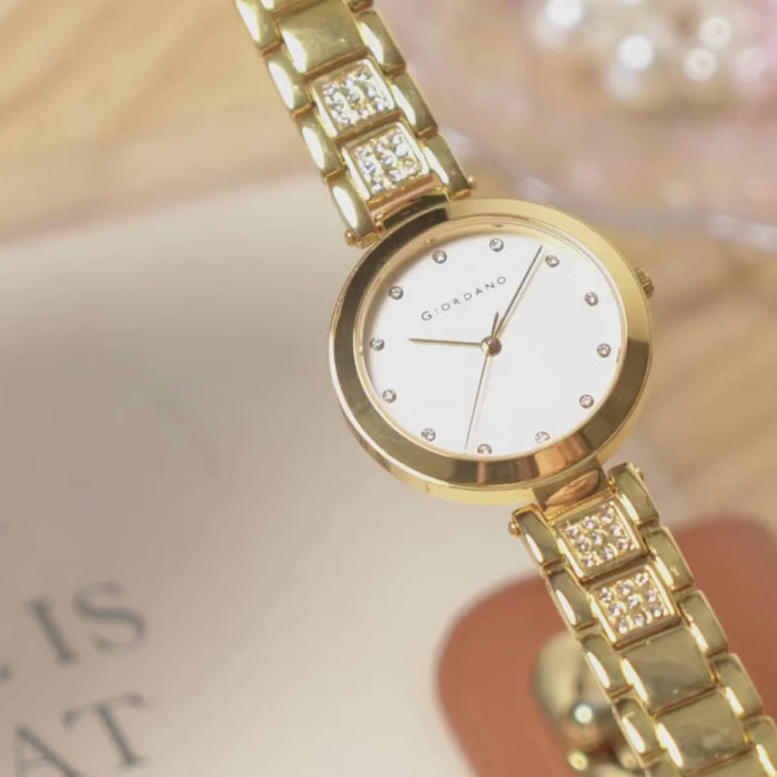 Giordano Eleganza Collection Analog Watch for Women with Crystal-Studded Strap & Diamond Indices-A2037-22