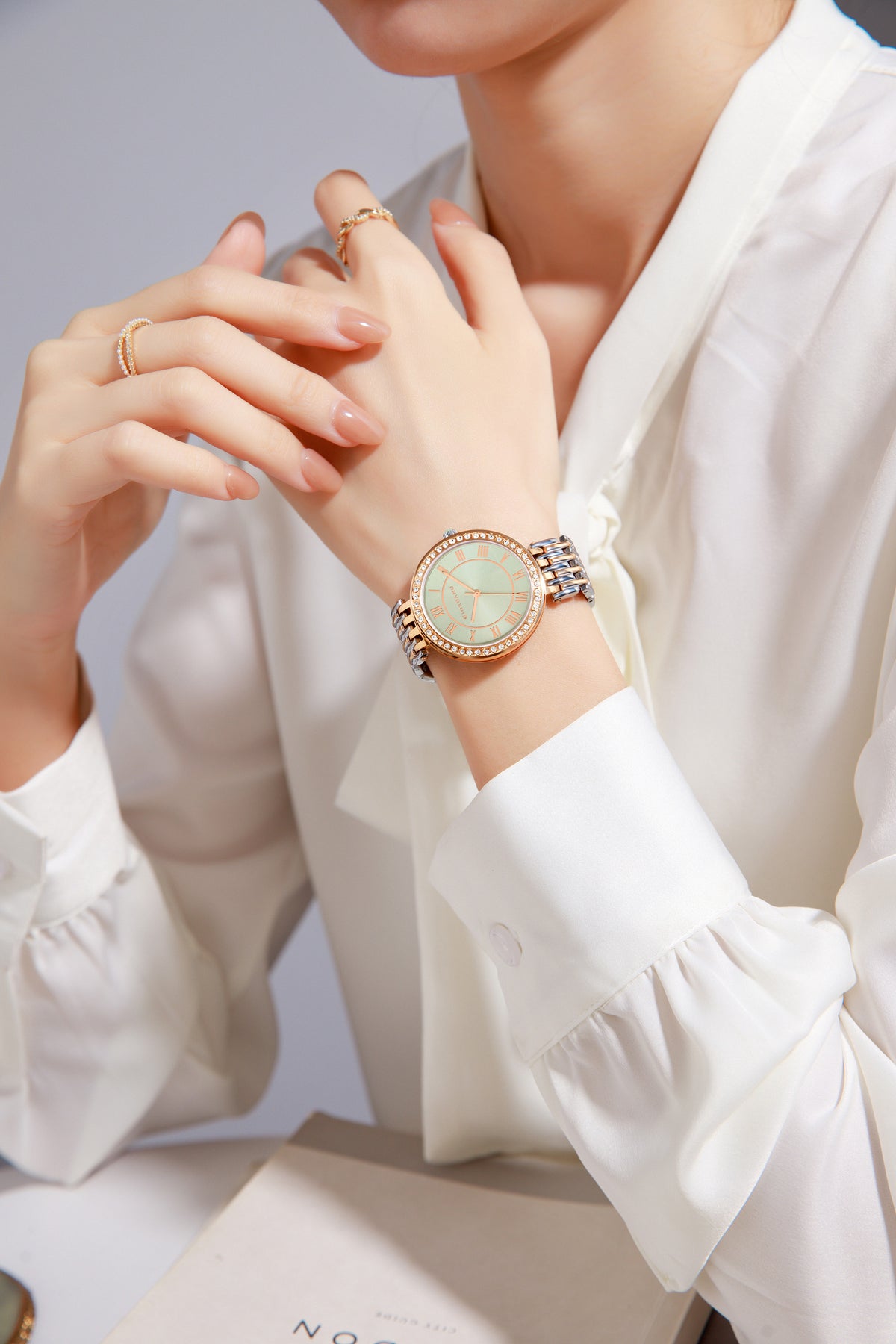 Giordano Eleganza Collection Watch for Women with Stainless Steel Strap and Crystal Embellished Bezel, Roman Numerals-A2083-11C
