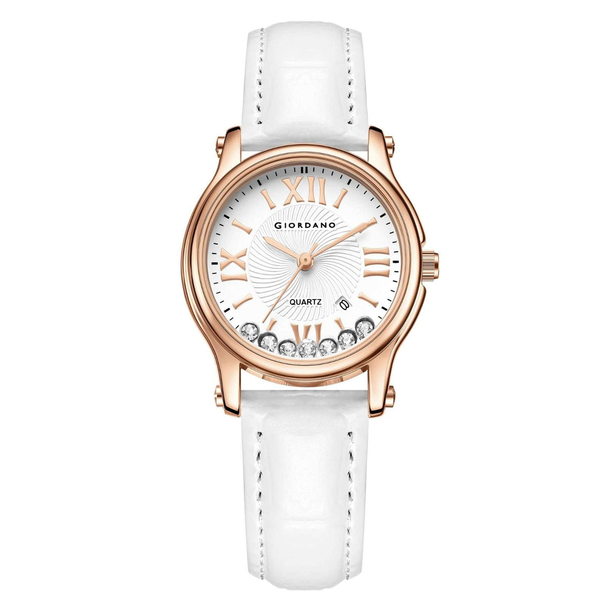 Giordano Luxury Analog Quartz Watch for Women – Rose Gold Case, Roman Numerals, Crystal-Studded Dial, Leather Strap – Elegant Timepiece - GZ-60142-33