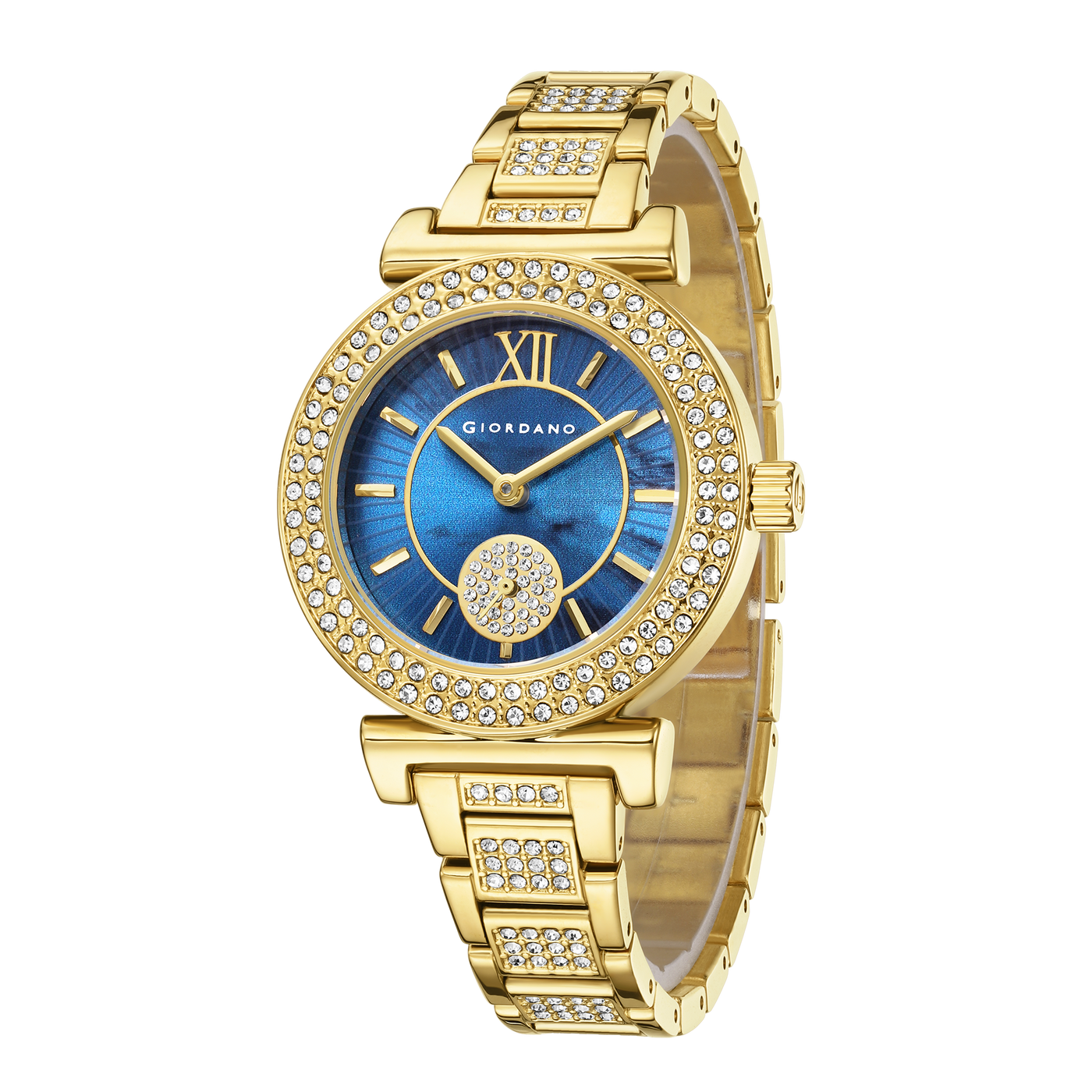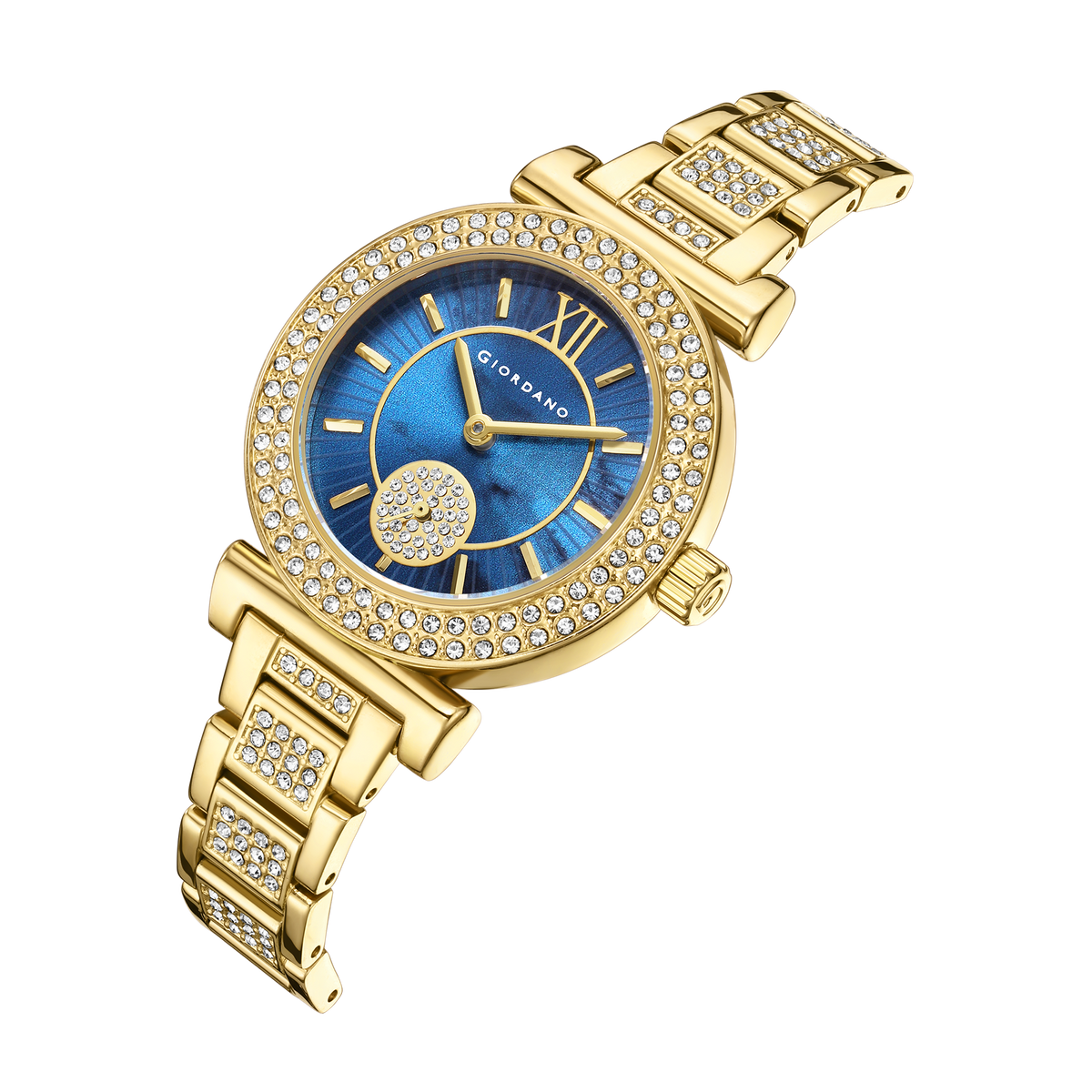 Giordano Luxury Analog Watch for Women - Elegant Crystal Design with sub dial and Diamond Studed statinless Steel Strap | GZ-60086-22