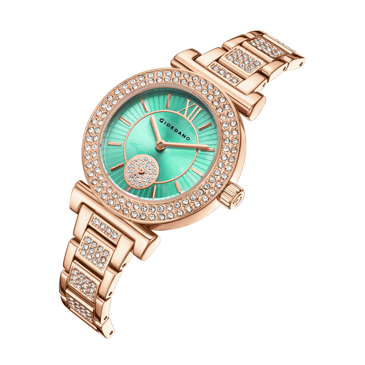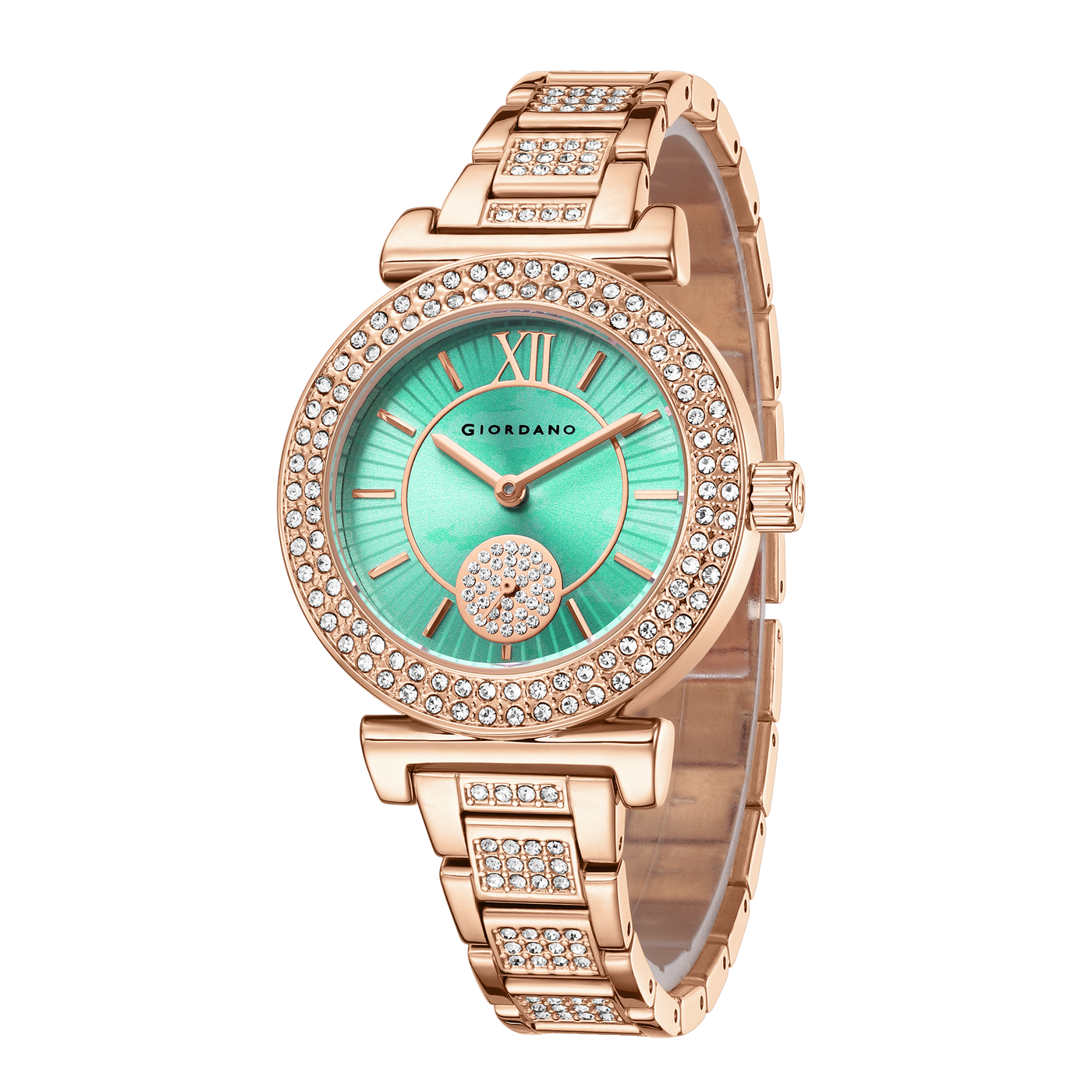 Giordano Luxury Analog Watch for Women - Elegant Crystal Design with sub dial and Diamond Studed statinless Steel Strap | GZ-60086-33