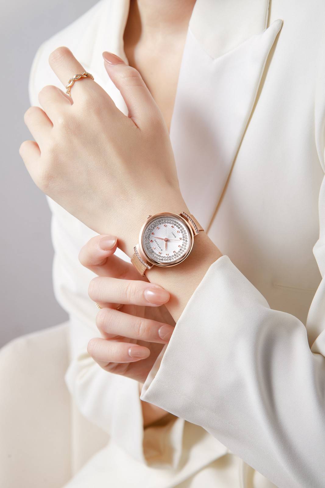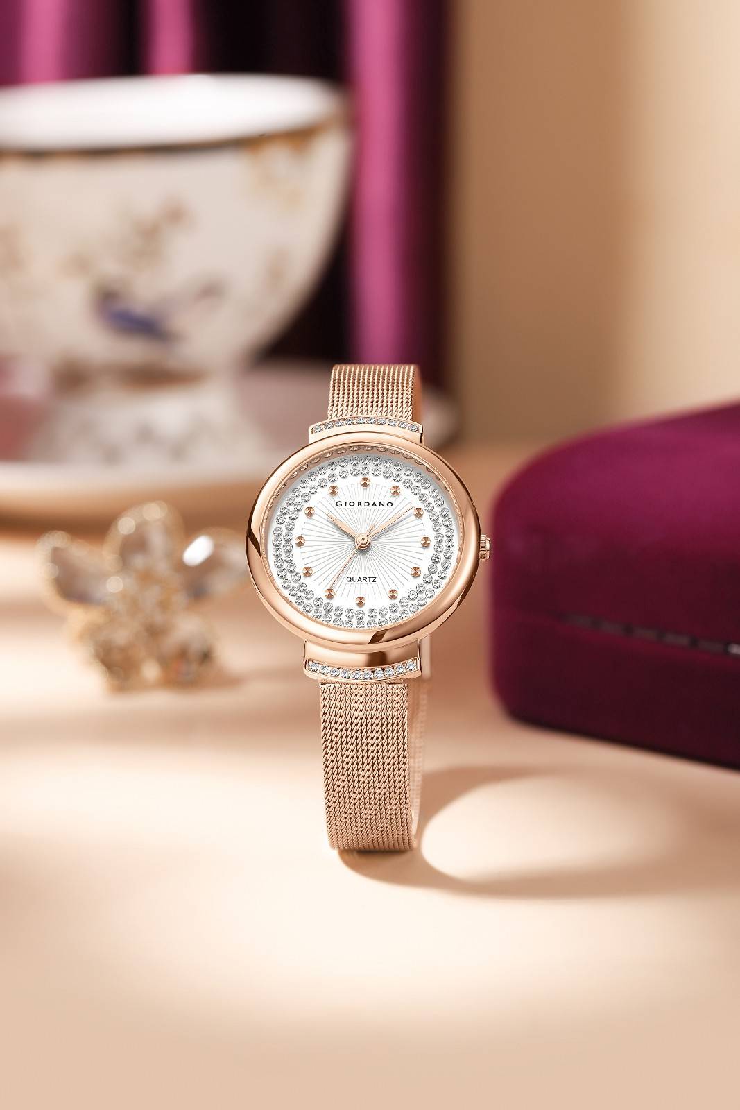 Giordano Luxury Rose Gold Analog Watch for Women – Crystal Embellished Dial, Mesh Strap, Quartz Movement – Elegant Timepiece - GZ-60143-11